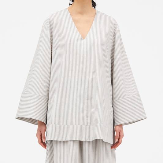 Belia Striped Cotton Skjorte, Ivory/Charcoal