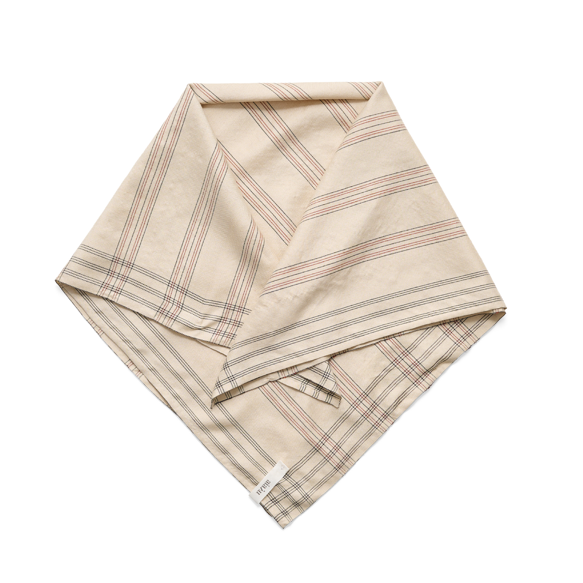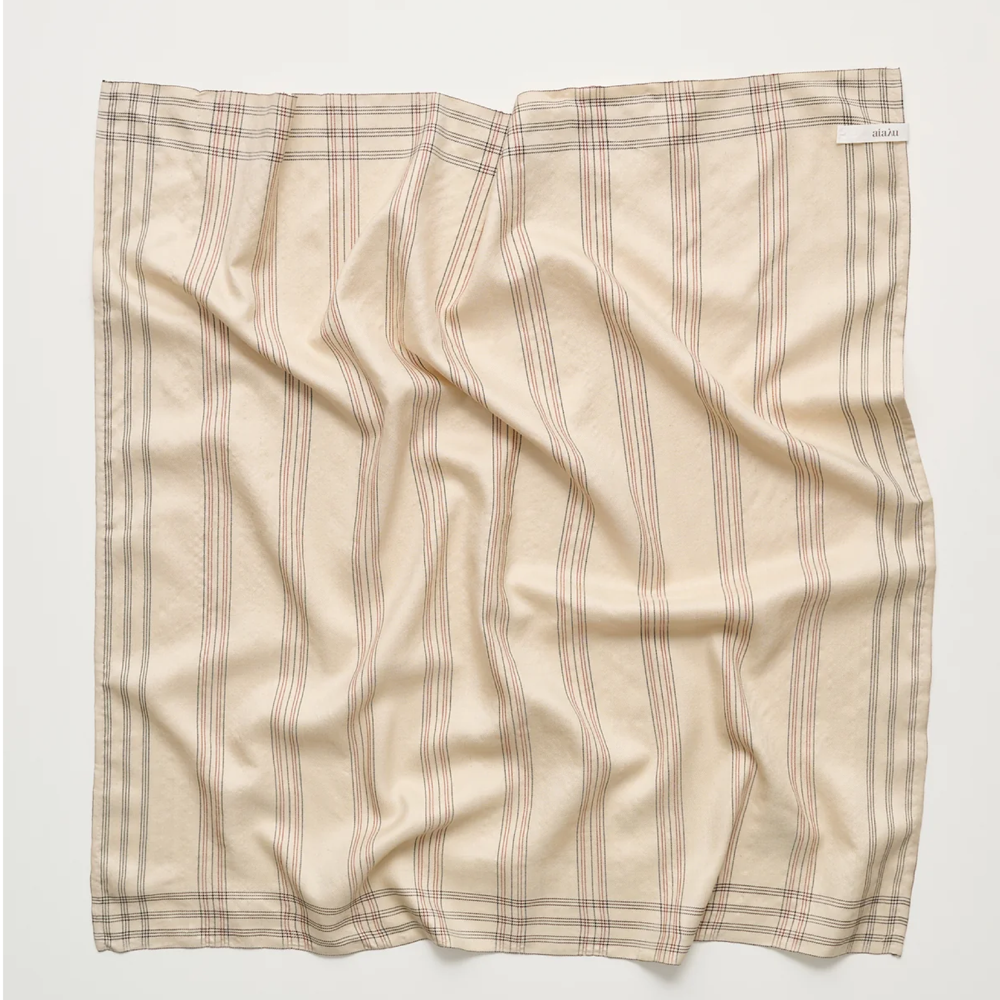 Et elegant, kvadratisk tørklæde håndspundet i silke på traditionelle nepalesiskehåndvæve. Tørklædet er detaljeret med en enkel foldning, et aiayu-logo og smukt, ternet mønster.