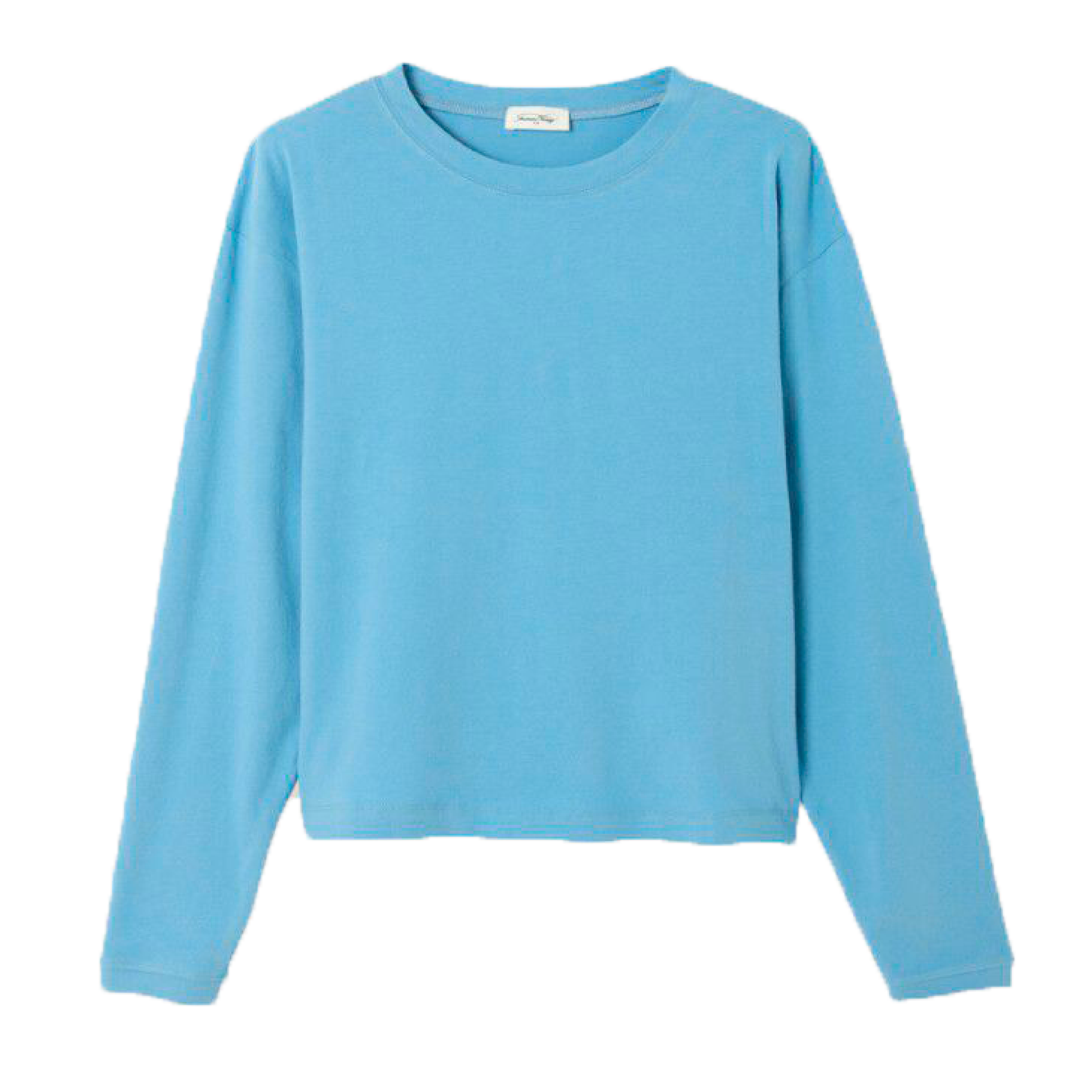 Den blødeste langærmet bluse fra American Vintage, i smuk lyseblå farve. Blusen har rund hals, og er løs i modellen.