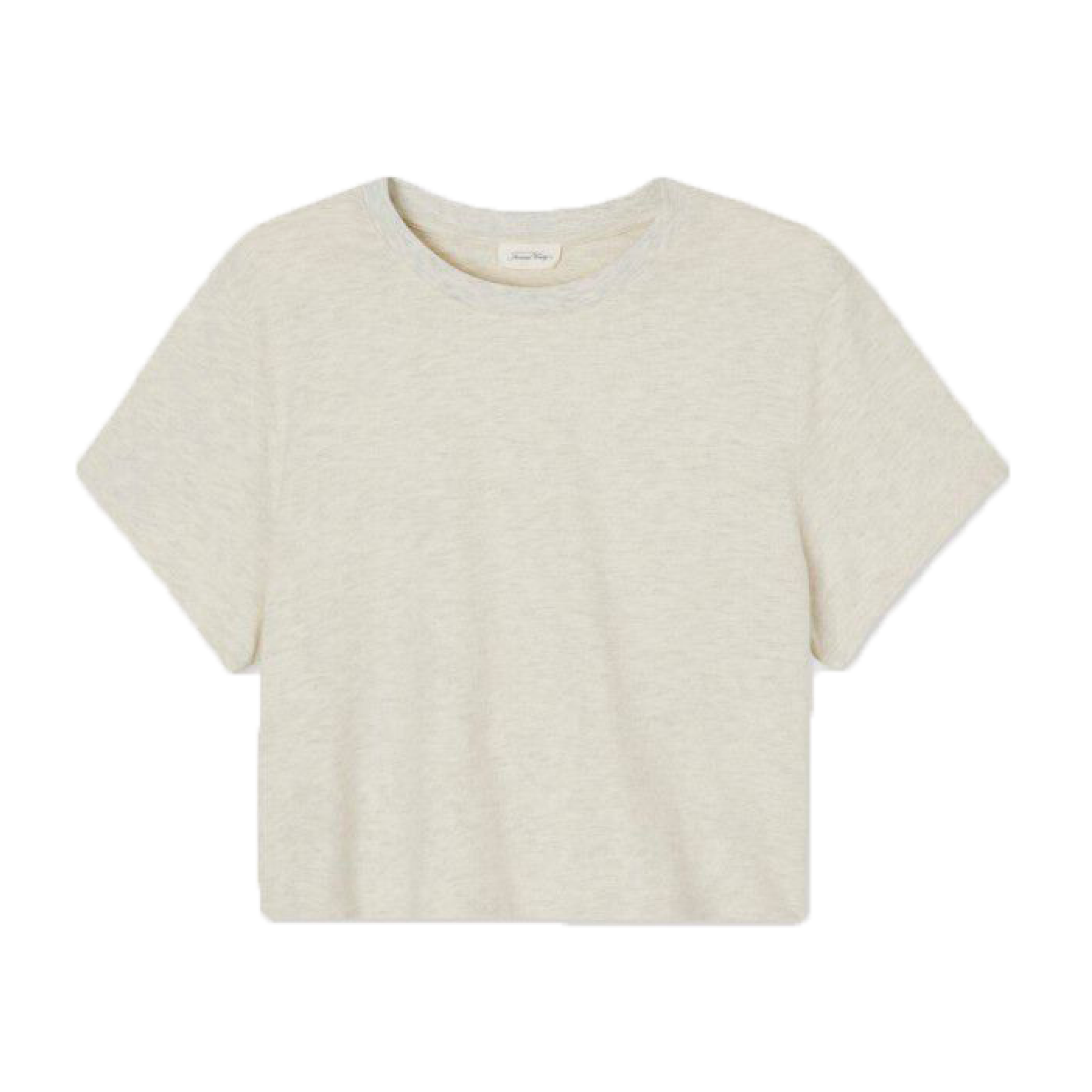 Den blødeste tee fra American Vintage, i smuk lysegrå farve. T-shirten har rund hals, og er tætsiddende i modellen.