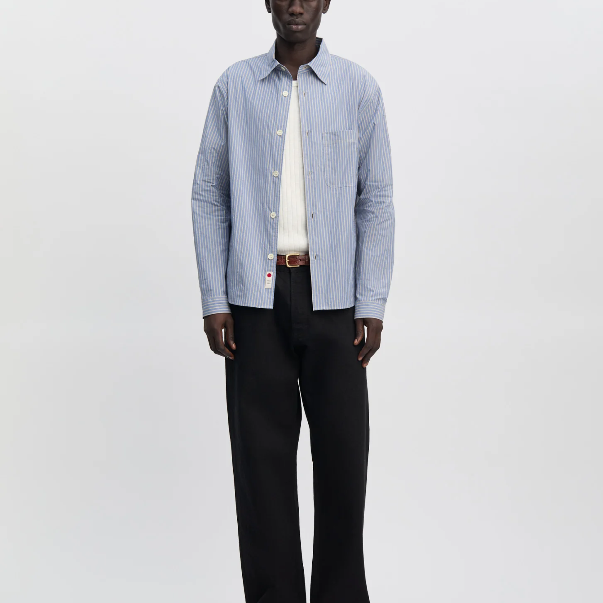 Klassisk skjorte fra Another Aspect, i let japanskvævet bomuld med fine blå og hvide striber. Skjorten har et afslappet snit, brystlomme og diskrete perlemorsknapper, som giver et rent og tidløst udtryk. En alsidig skjorte, der fungerer lige godt til hverdag som til mere formelle looks.