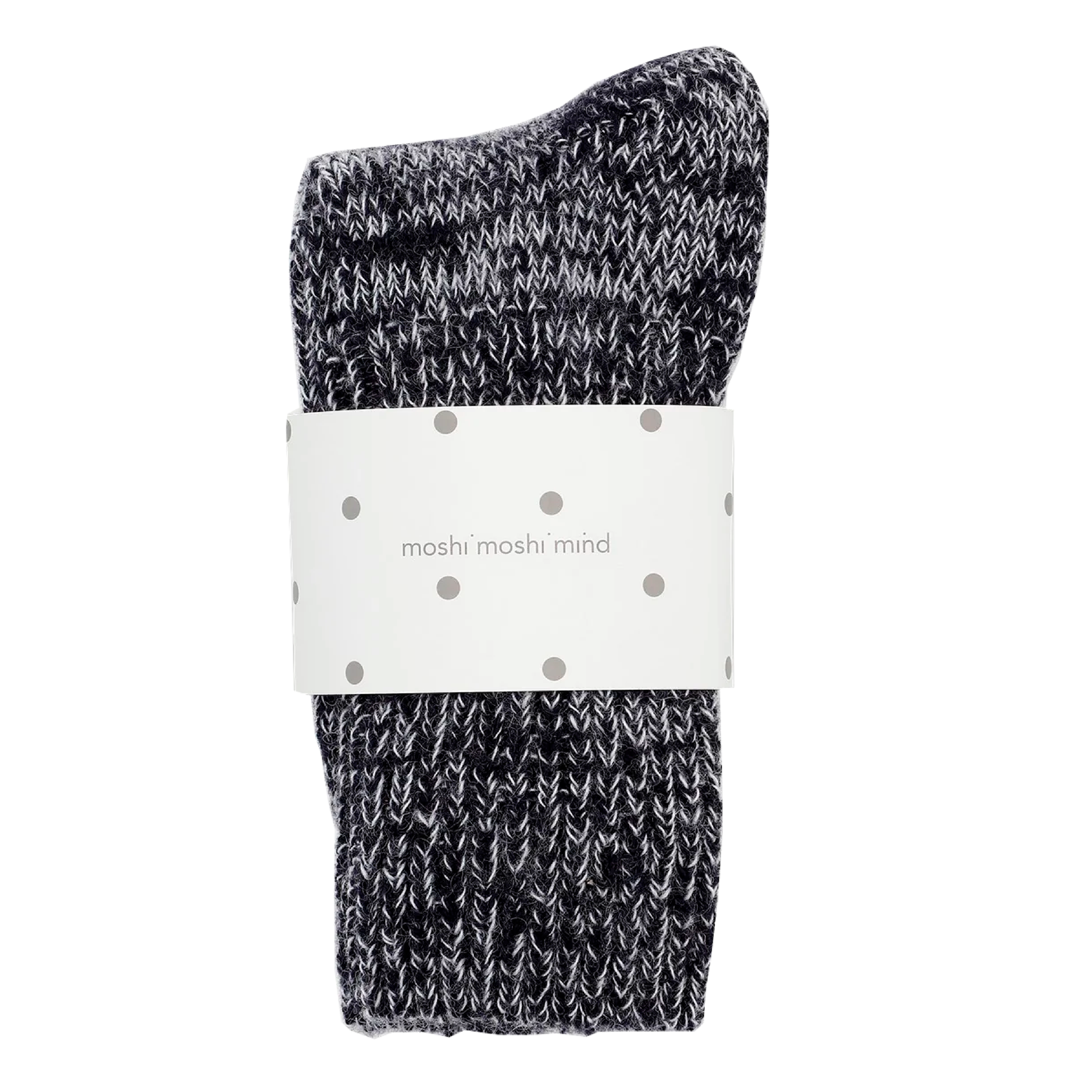 Skønne og varme strikkede strømper fra Moshi Moshi Mind, i en skøn uldblanding. Strømperne er i ribkvalitet og er behagelig at have på. Den perfekte strømpe til at holde dine fødder varme i de kolde måneder.