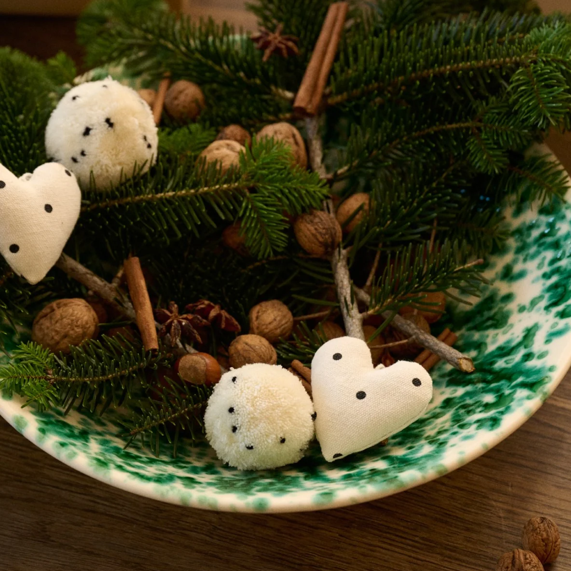 Dotted Hearts, Ecru/Black Dots (3 Pcs)