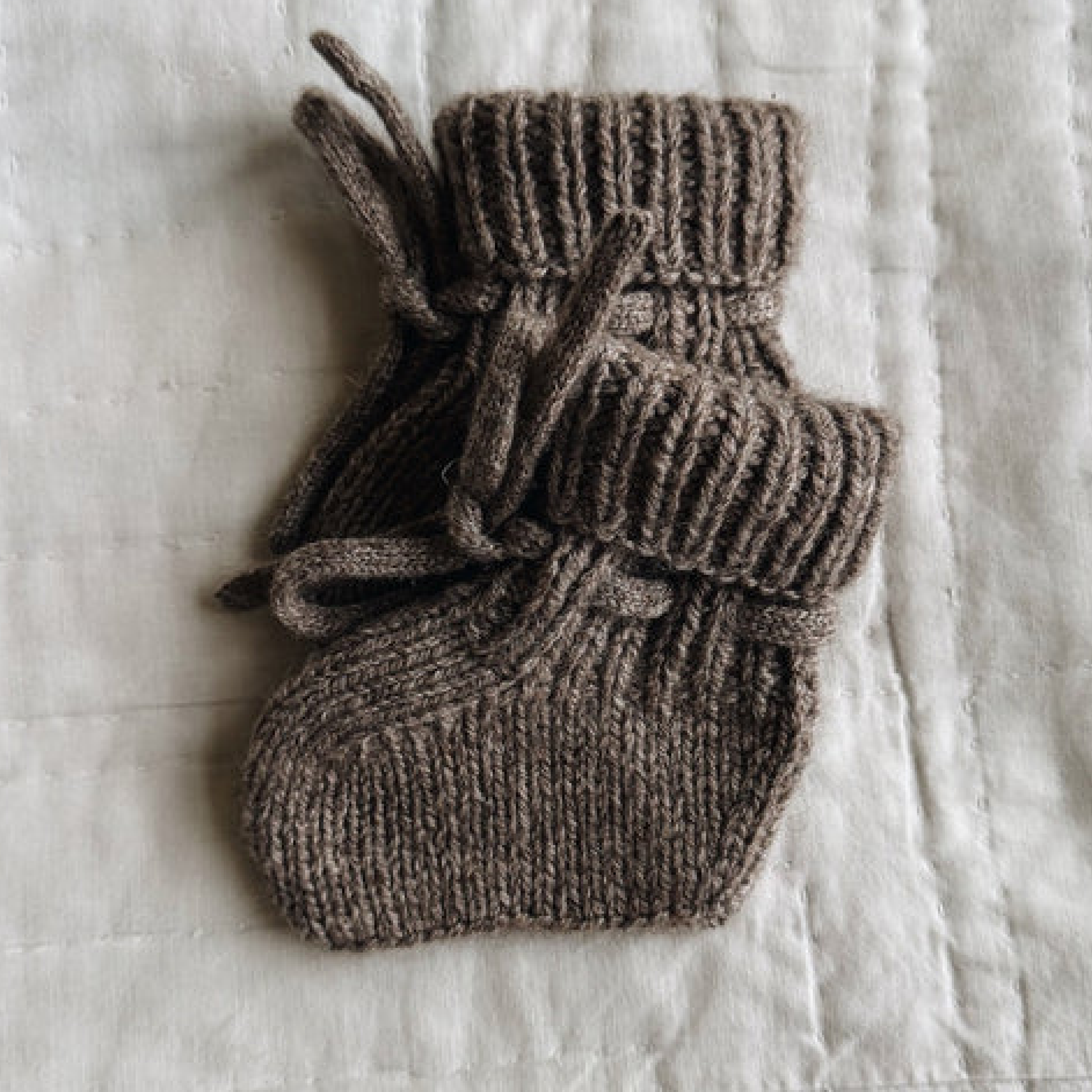 Cony futterne fra det fine danske brand, Lalaby. Futterne er håndstrikket i den blødeste kvalitet, og lukkes med en blød snor om anklen - så de sidder godt på de små fødder.