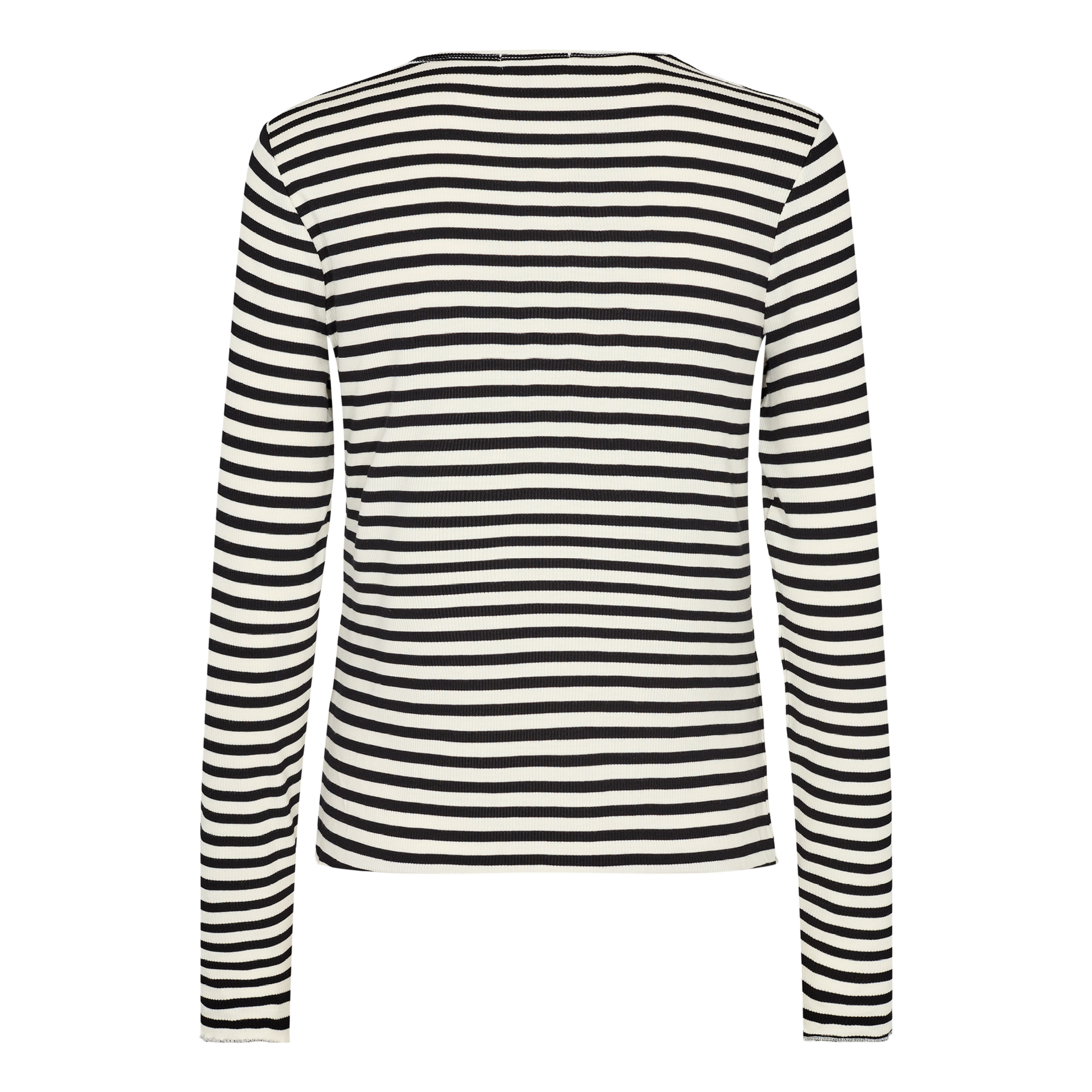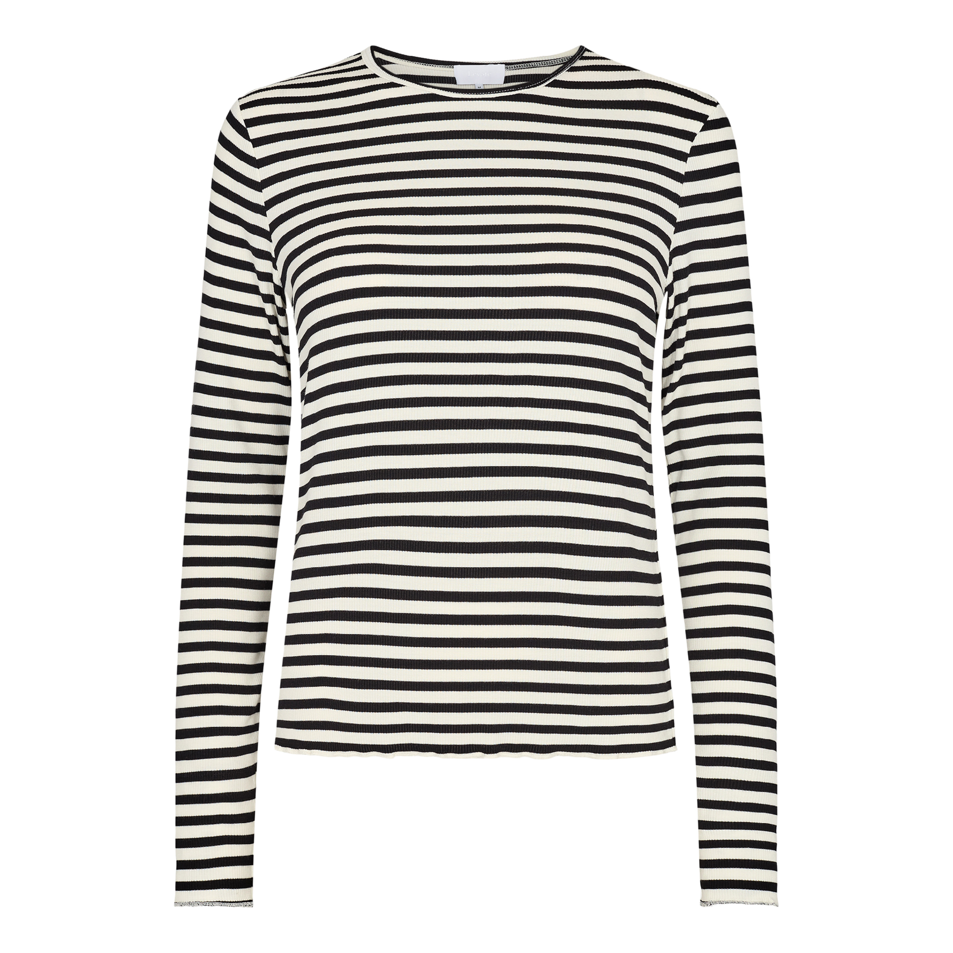 Beautiful and simple off-white blouse in thin rib from Leveté Room. The blouse has a round neckline, long sleeves and curled hem at the bottom and at the sleeves. In addition, the blouse is soft and in a delicious thin ribbed quality.