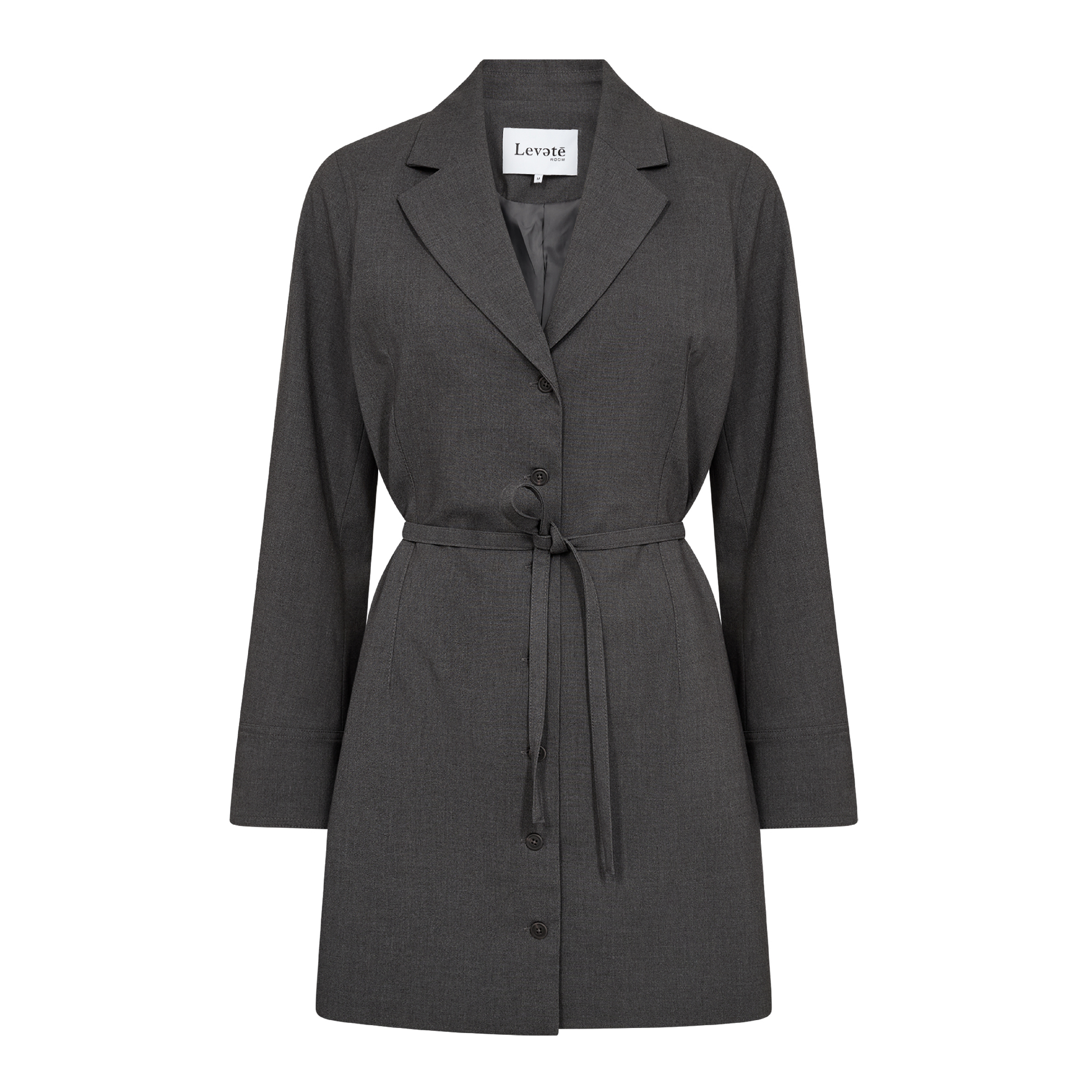 Skøn kjole fra Levete Room i skøn og let kvalitet. Kjolen har en krave med hak, knaplukning og et bindebånd i taljen, som giver elegance.