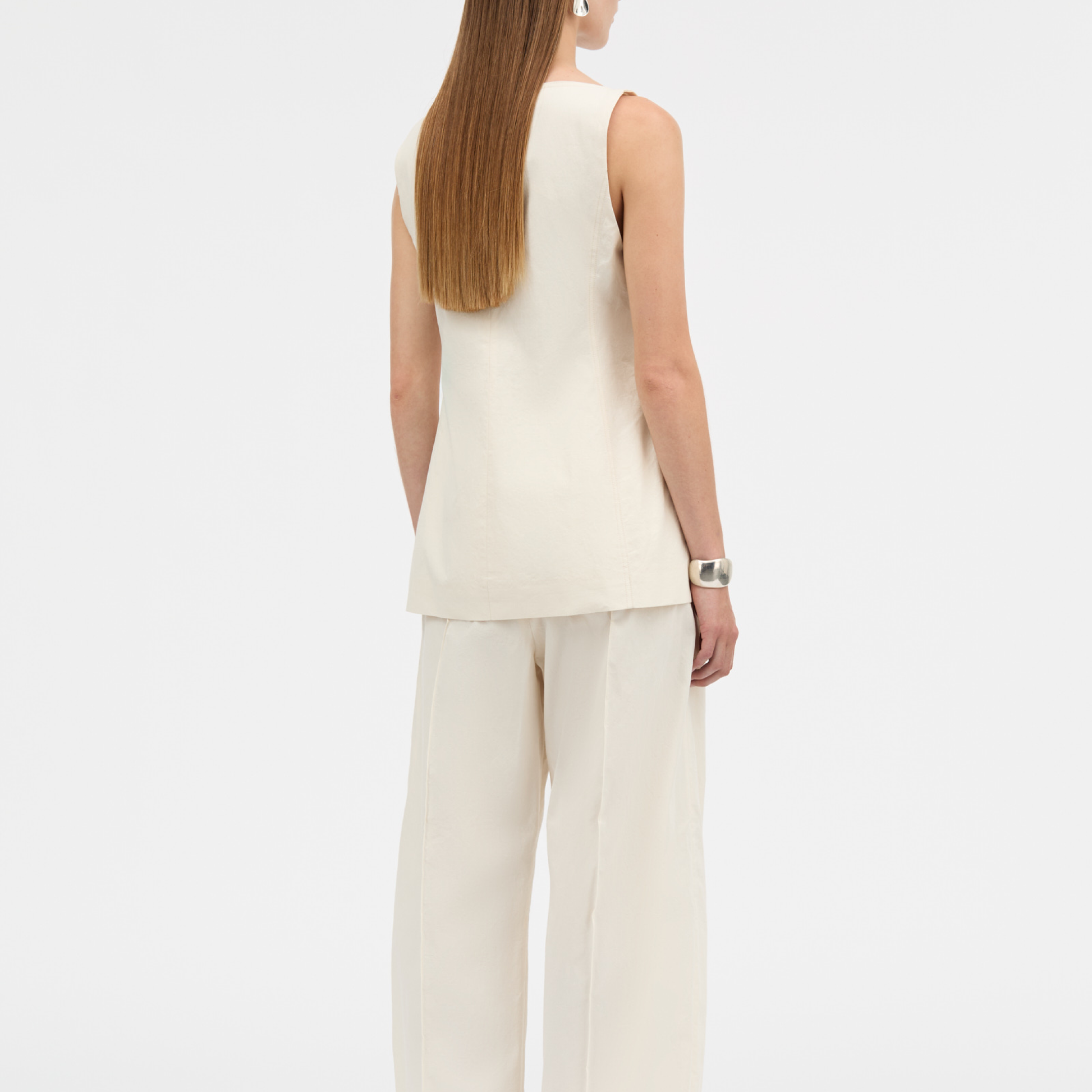 Smuk vest fra MKDT Studio, i en lys farve. Vesten lukkes med knapper, og har en smuk figursyet siluet