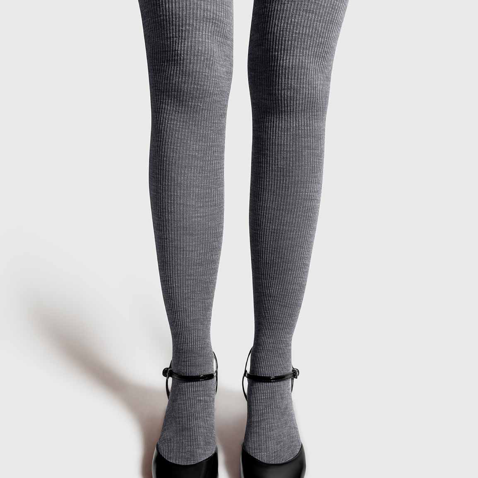 Merino Ribbed Tights, Light Grey
