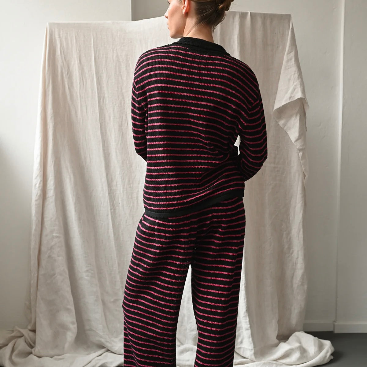 Nuria Polo fra det danske brand, Proem Parades. En ekstraordinær polo, designet til at kunne styles på flere måder. Det jacquardstrikkede mønster og de bølgede afslutninger fremhæver håndværket i dette design, mens den afslappede silhuet og krave giver et cool helhedsudtryk..