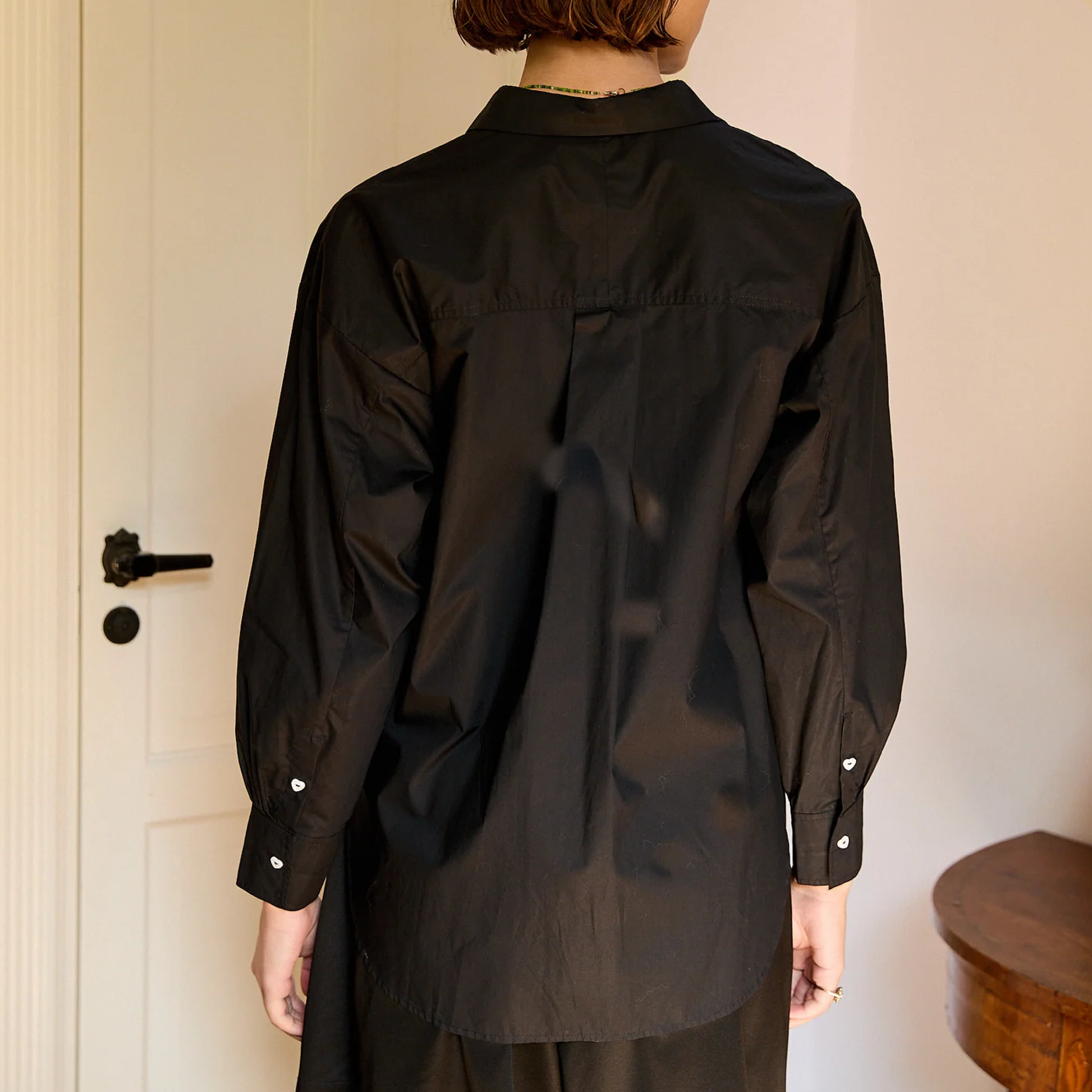 Dagmar Heart Shirt fra det danske brand, Proem Parades. Dagmar skjorten har været med fra Proem Parades siden deres første kollektion, og er en eksklusiv casual skjorte - med sænkede skuldre, ekstra længde og voluminøse ærmer, med en detaljeret manchet. Dagmar Heart har derudover de fineste detaljer, med naturlige perlemorsknapper formet som hjerter.