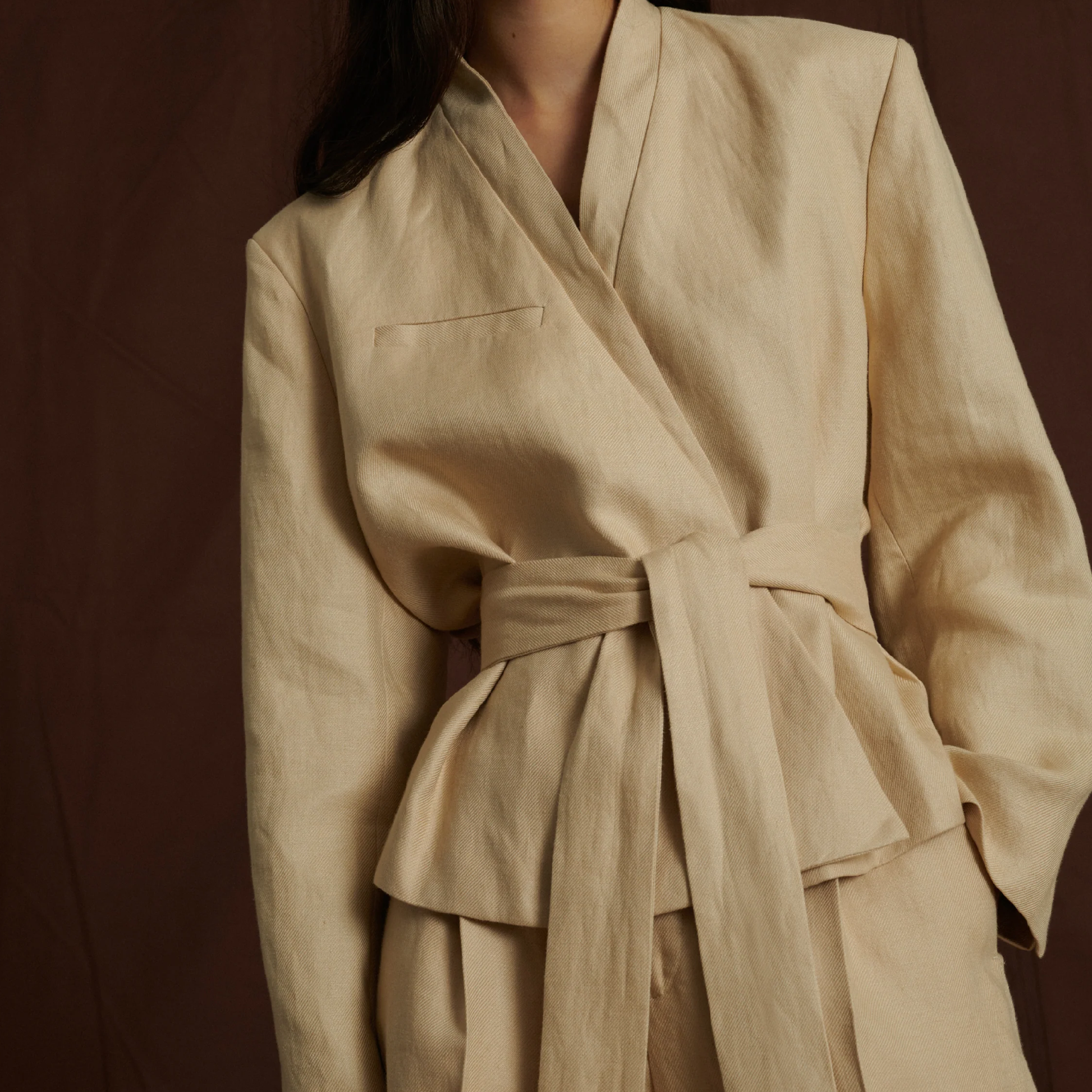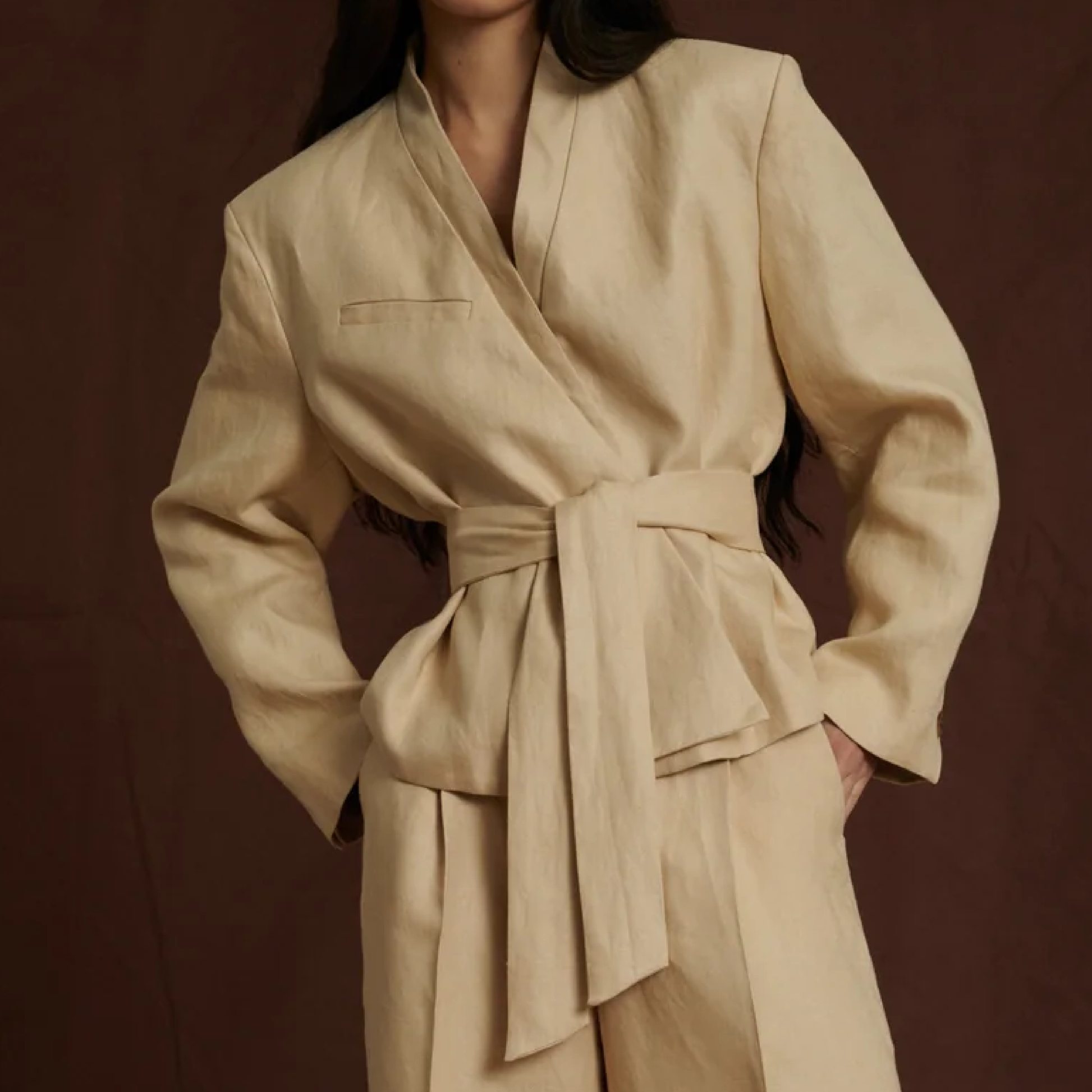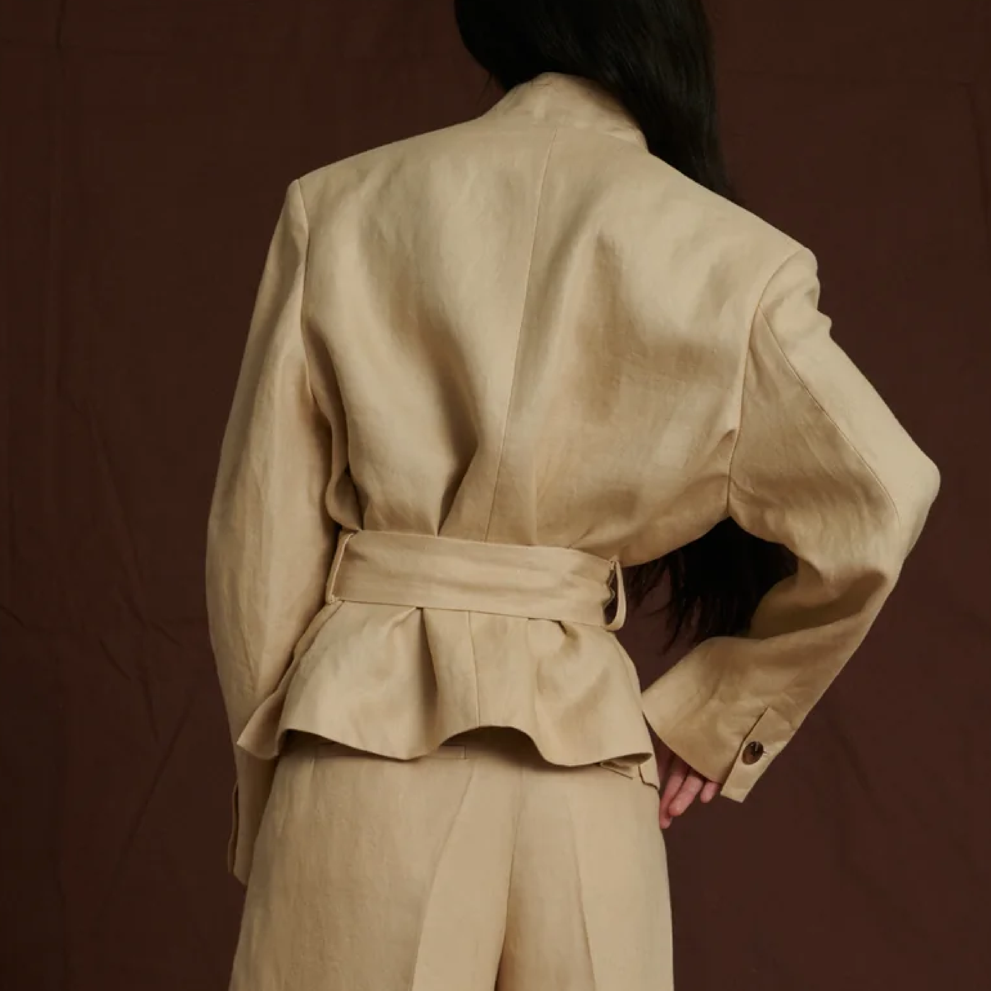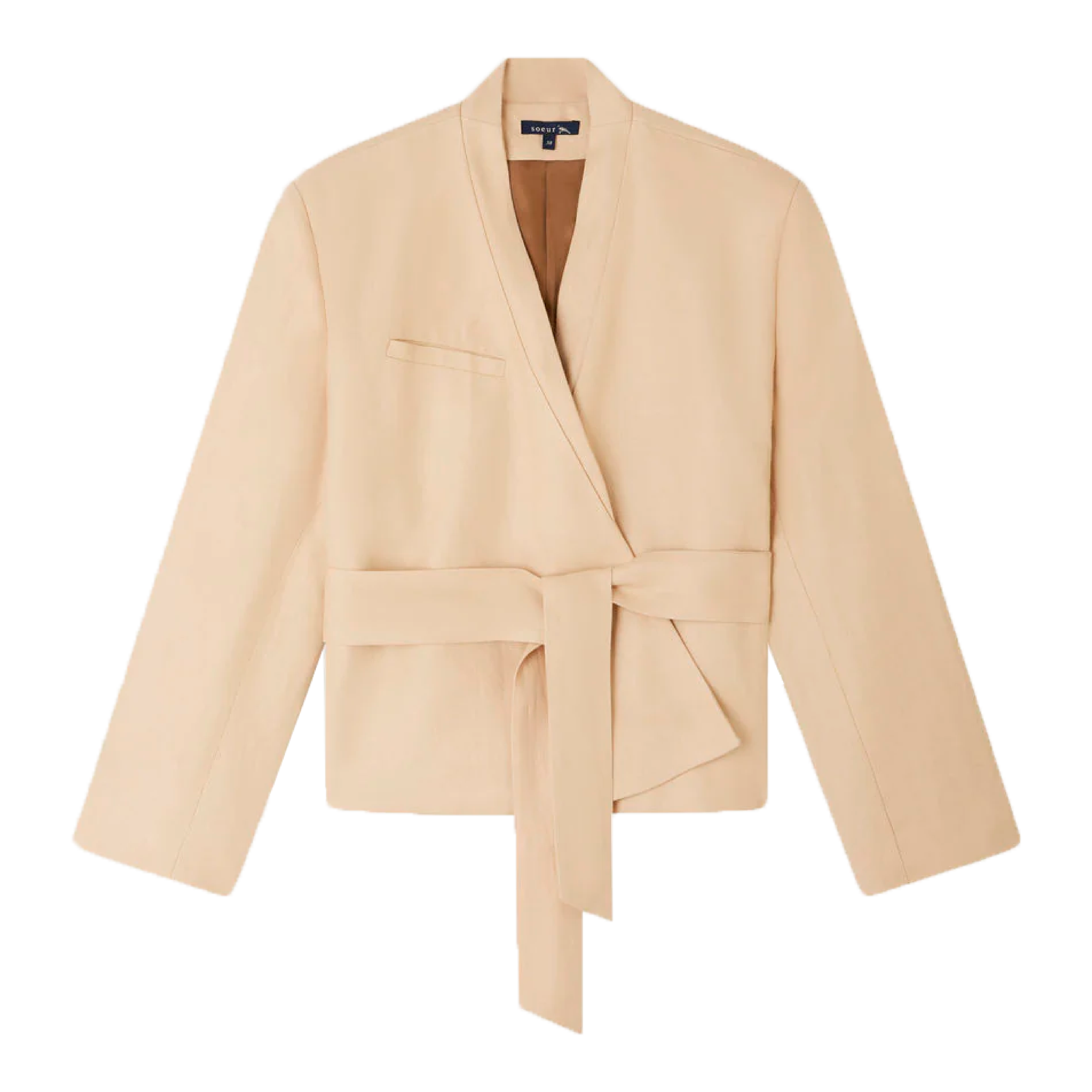 Smuk kort jakke med bælte fra det franske brand Soeur, i en skøn hørkvalitet.