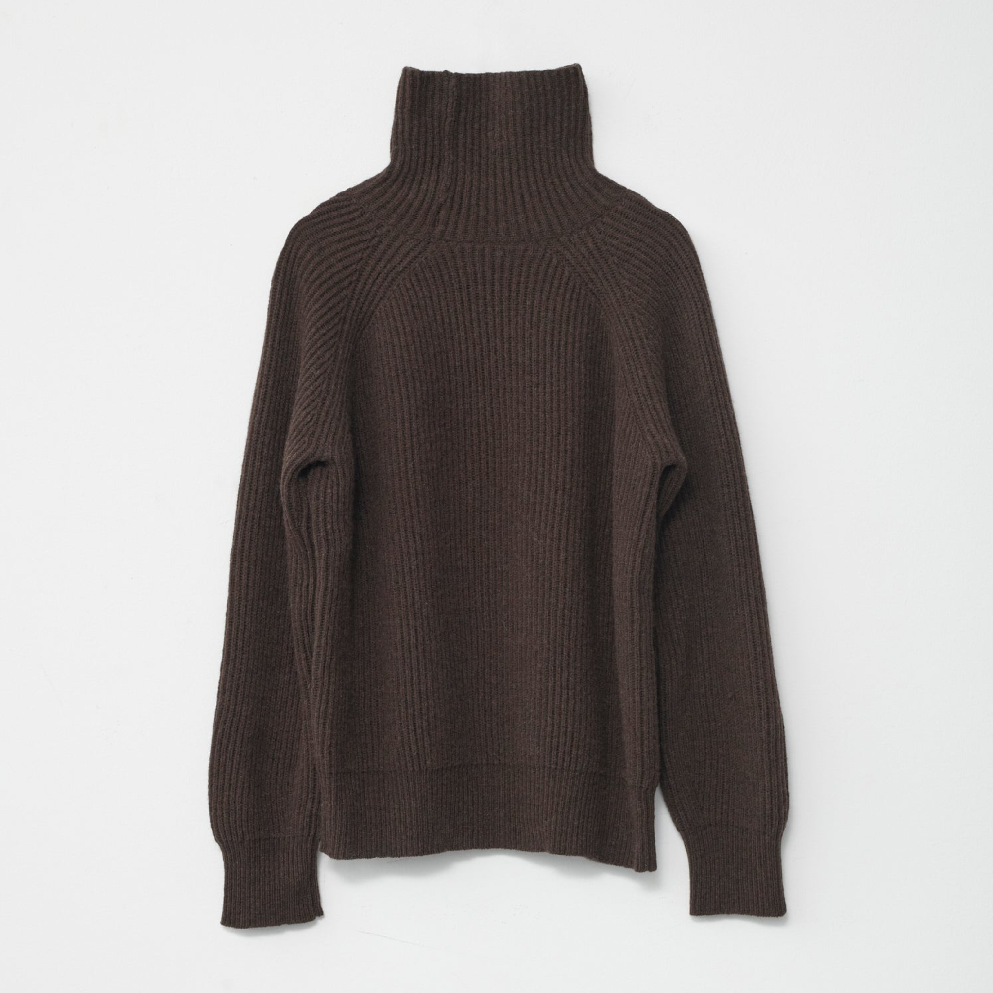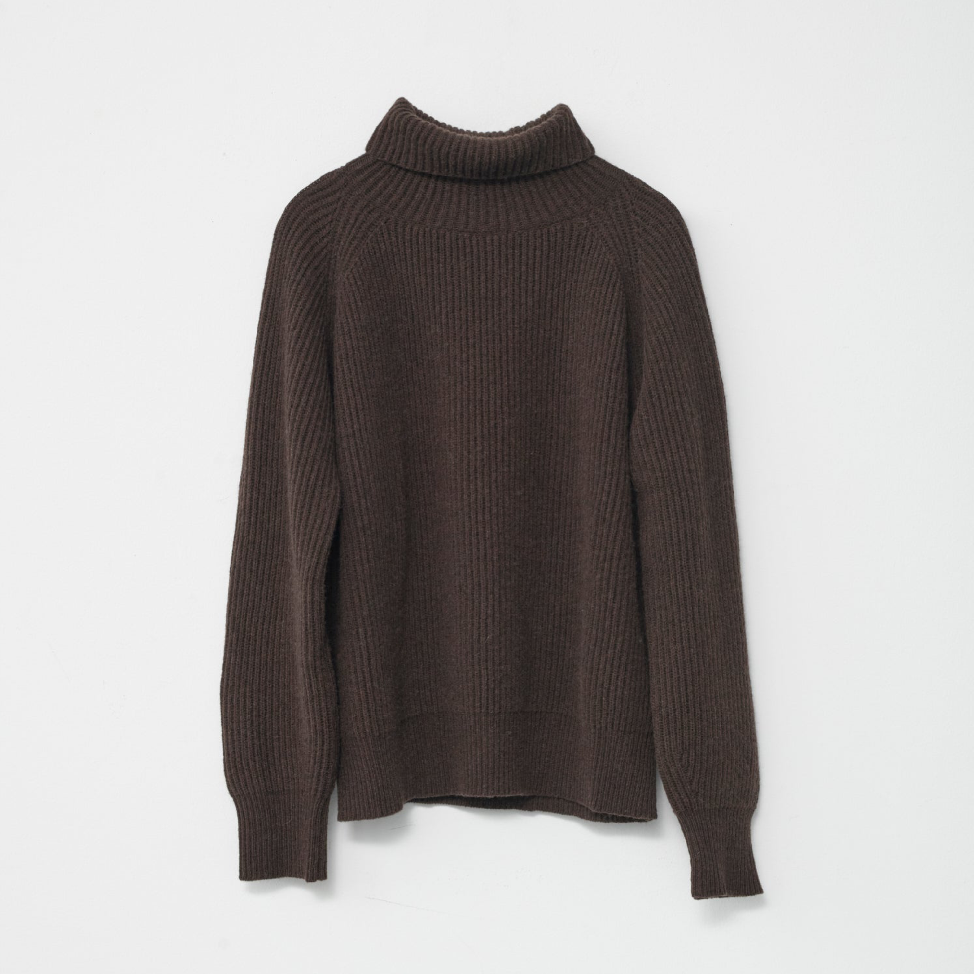 Shetland Wool Large Rib Crew-Neck Jumper, Brown