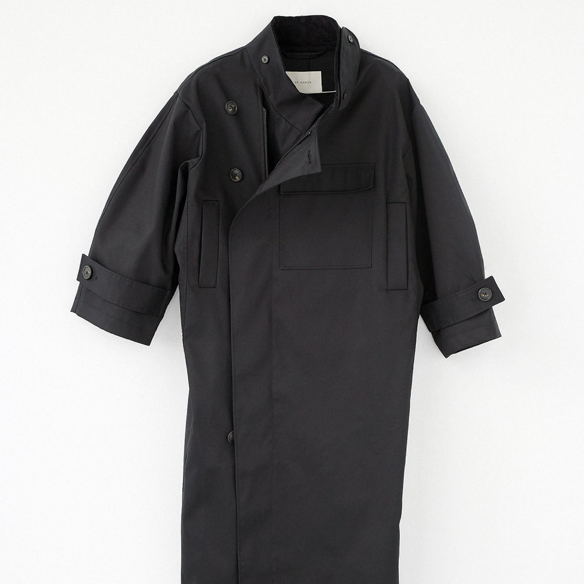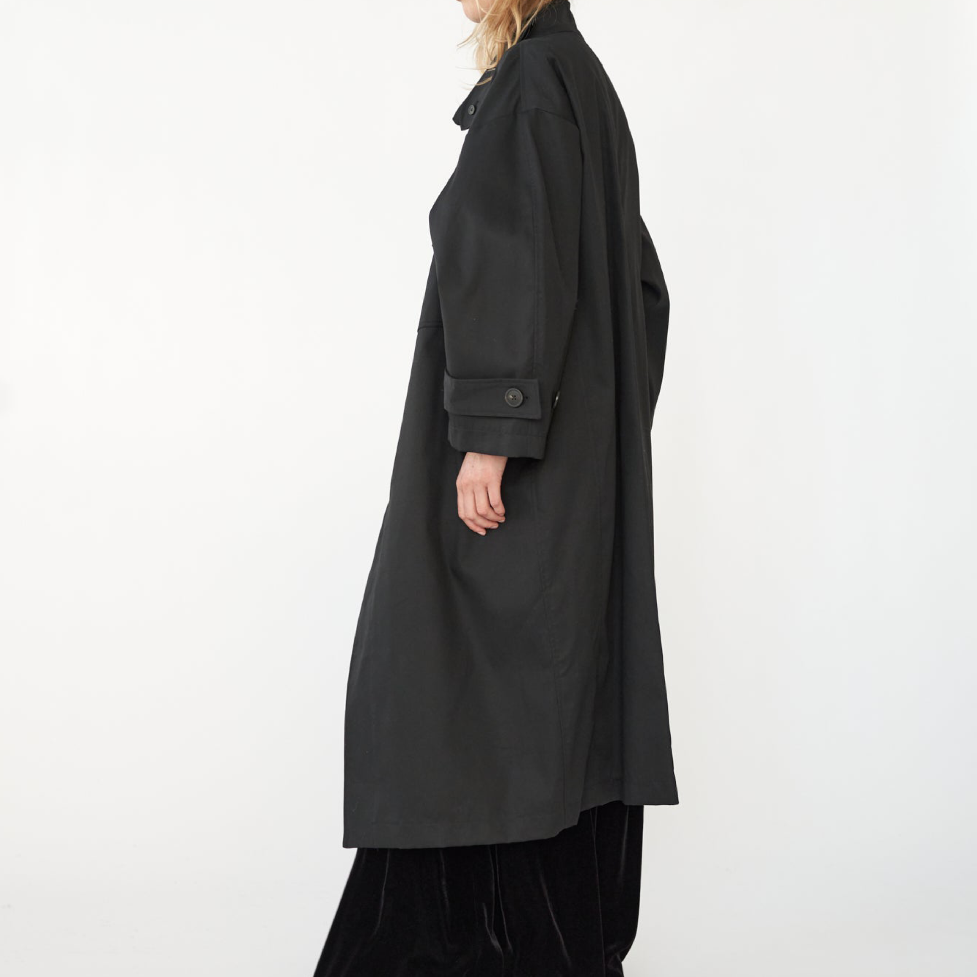 Water Resistant Coat Black fra AF Agger. Den populære frakke i sort med en oversize pasform. Frakken lukkes med en skjult lynlås fortil og knapper. Kraven har fløjl på indersiden, en brystlomme og to sidelommer.