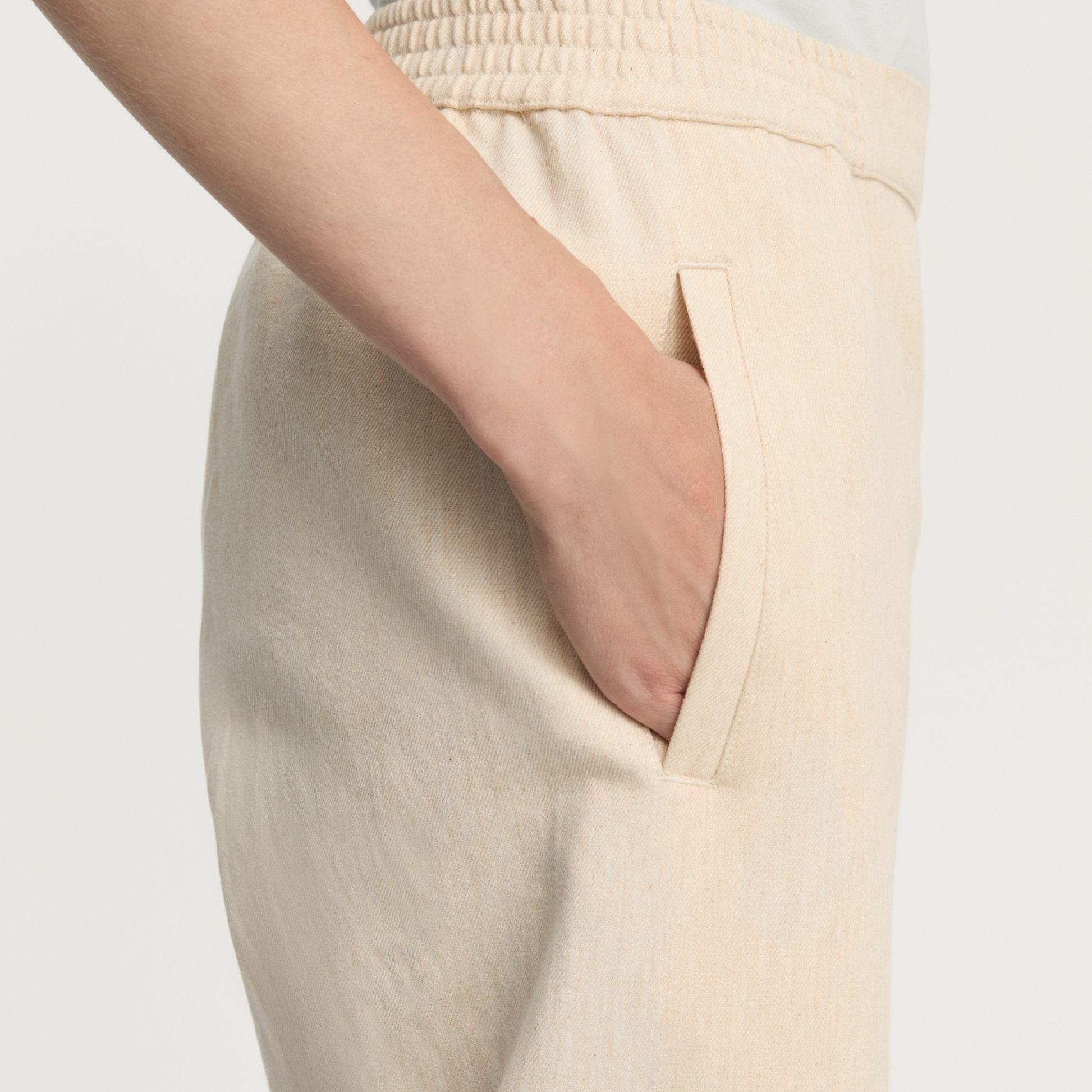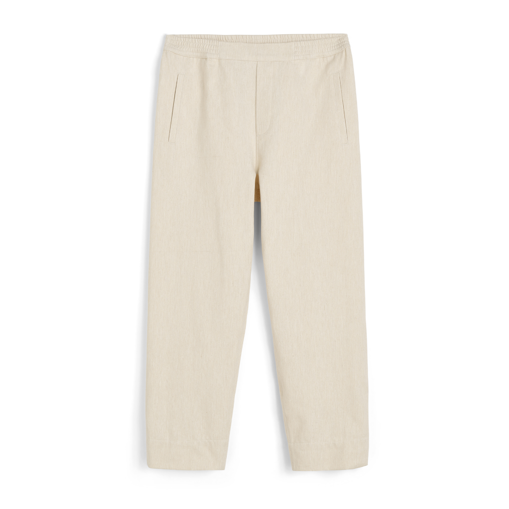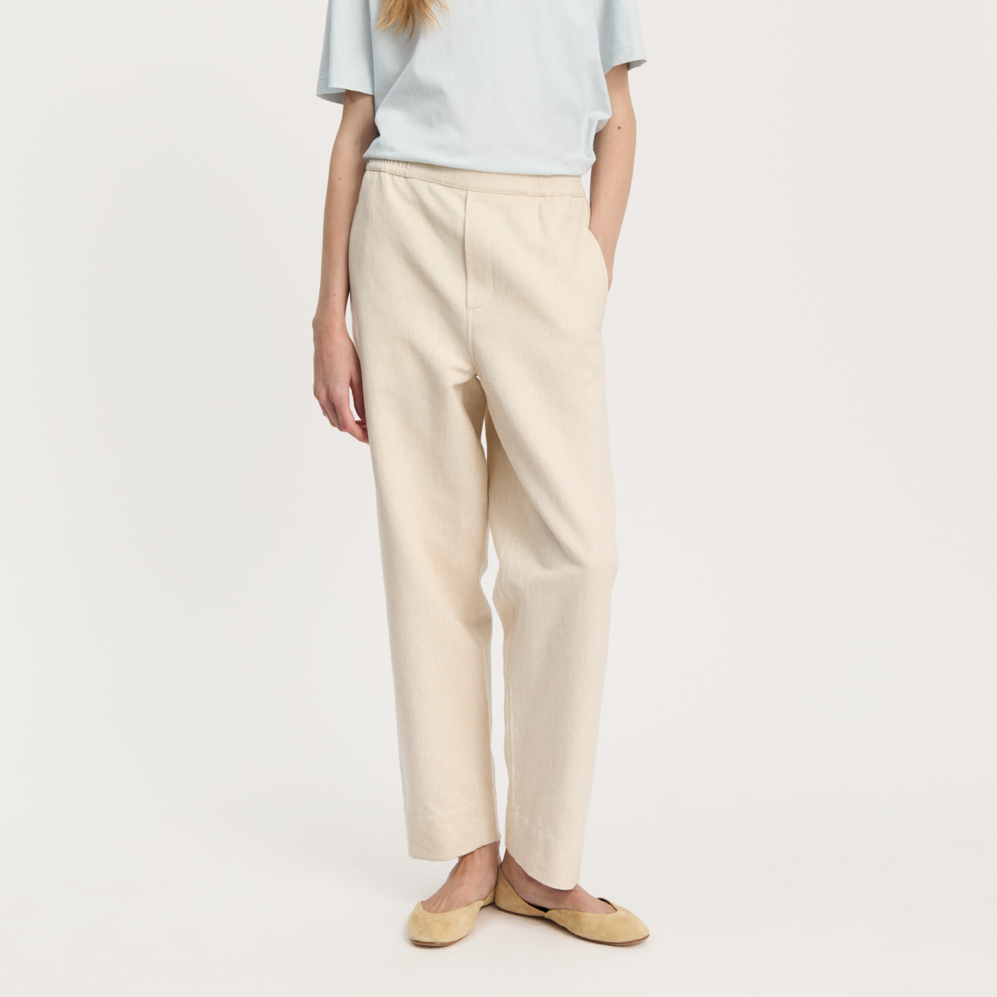 Et par tidløse bukser fremstillet i økologisk bomulds-twill. Designet i en afslappet og moderne silhuet med bred elastikkant i taljen, indvendige sømme, praktiske sidelommer, snydelynlås og let cropped benlængde, der giver et komfortabel og klassisk udtryk.