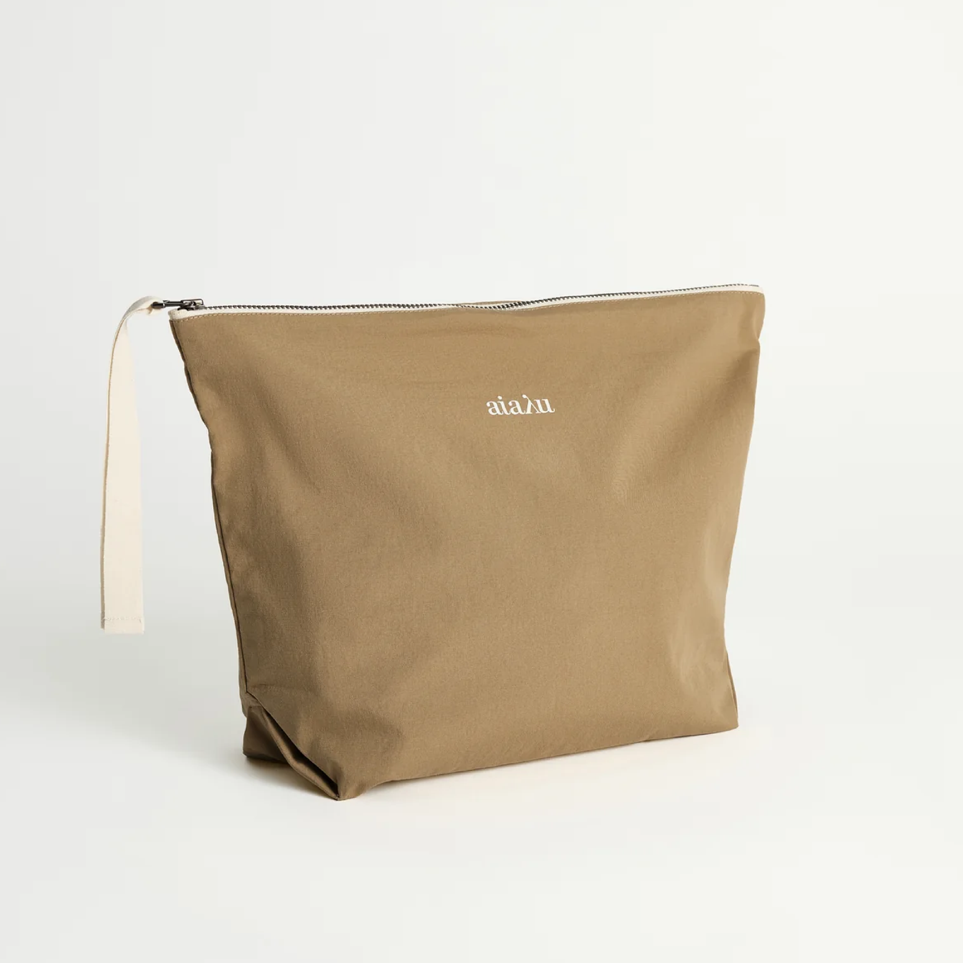Praktisk toilettaske af økologisk bomuld med lynlåslukning fra Aiayu. Pouch har indvendig bomuldsforing og kan let rengøres. Ideel til opbevaring af make-up eller toiletsager, hvad enten du er på farten eller derhjemme.