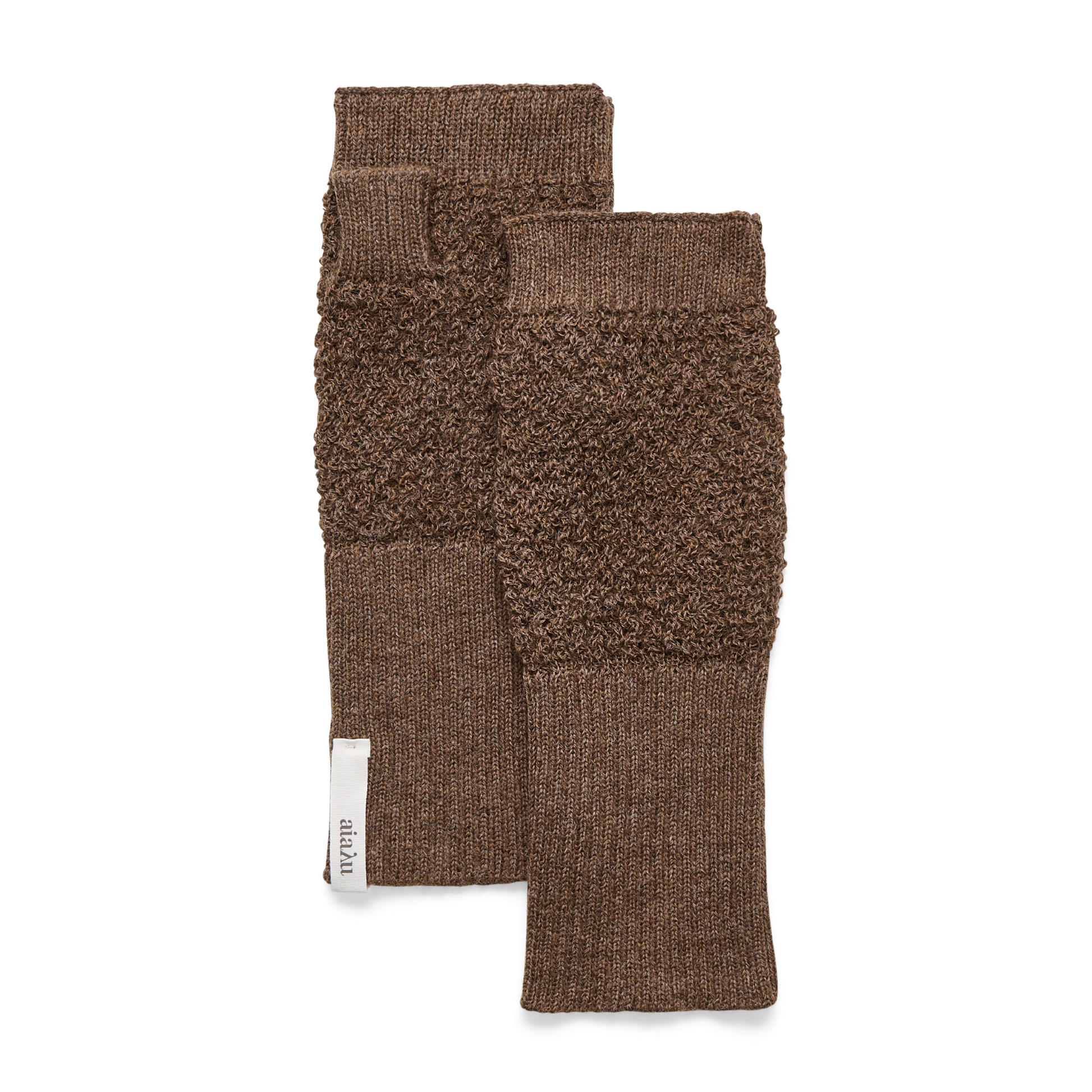 Et par raffinerede, fingerløse vanter fra Aiayu, fremstillet af eksklusiv, blød lamauld og strikket i et delikat ribstrik, der giver et let og elegant udtryk.
