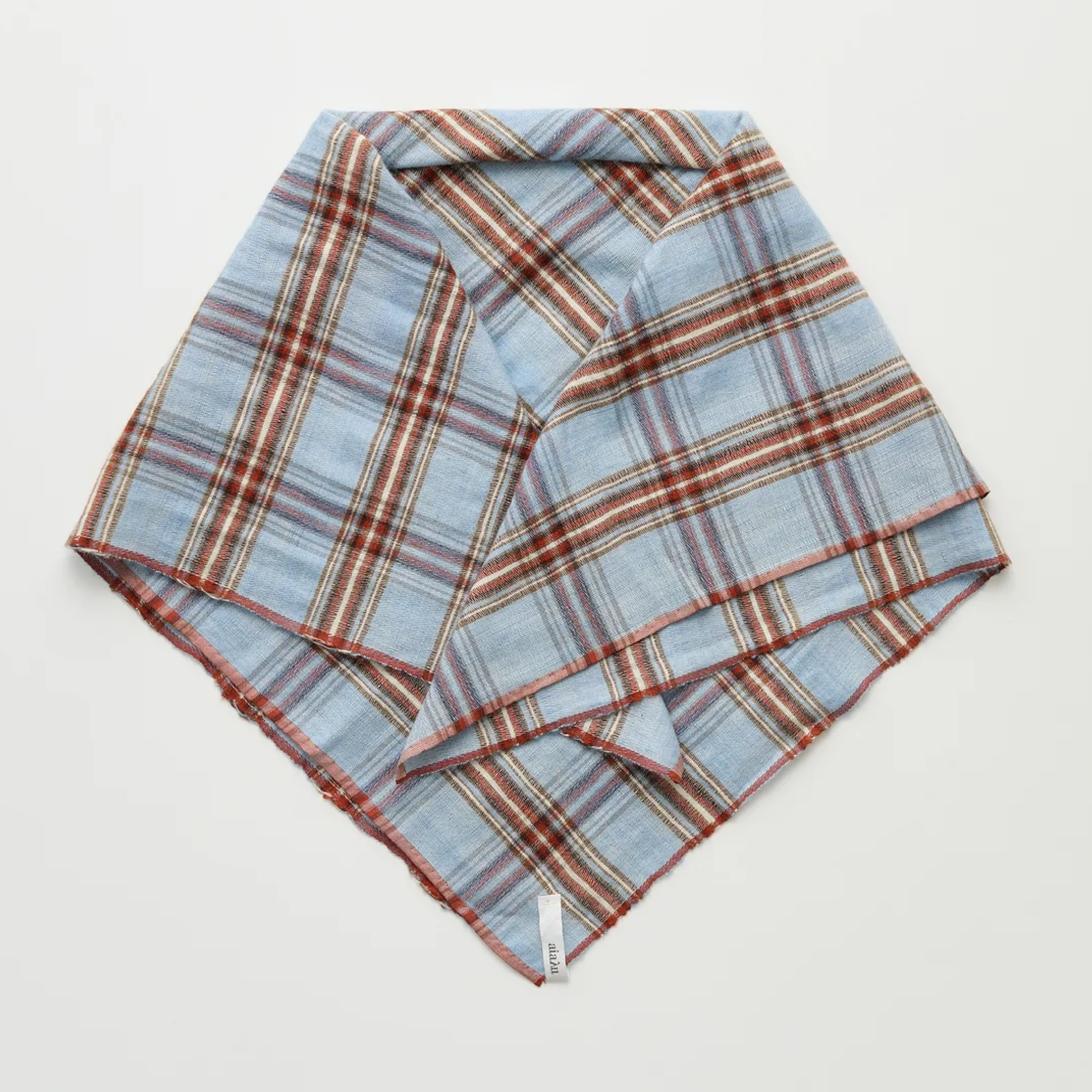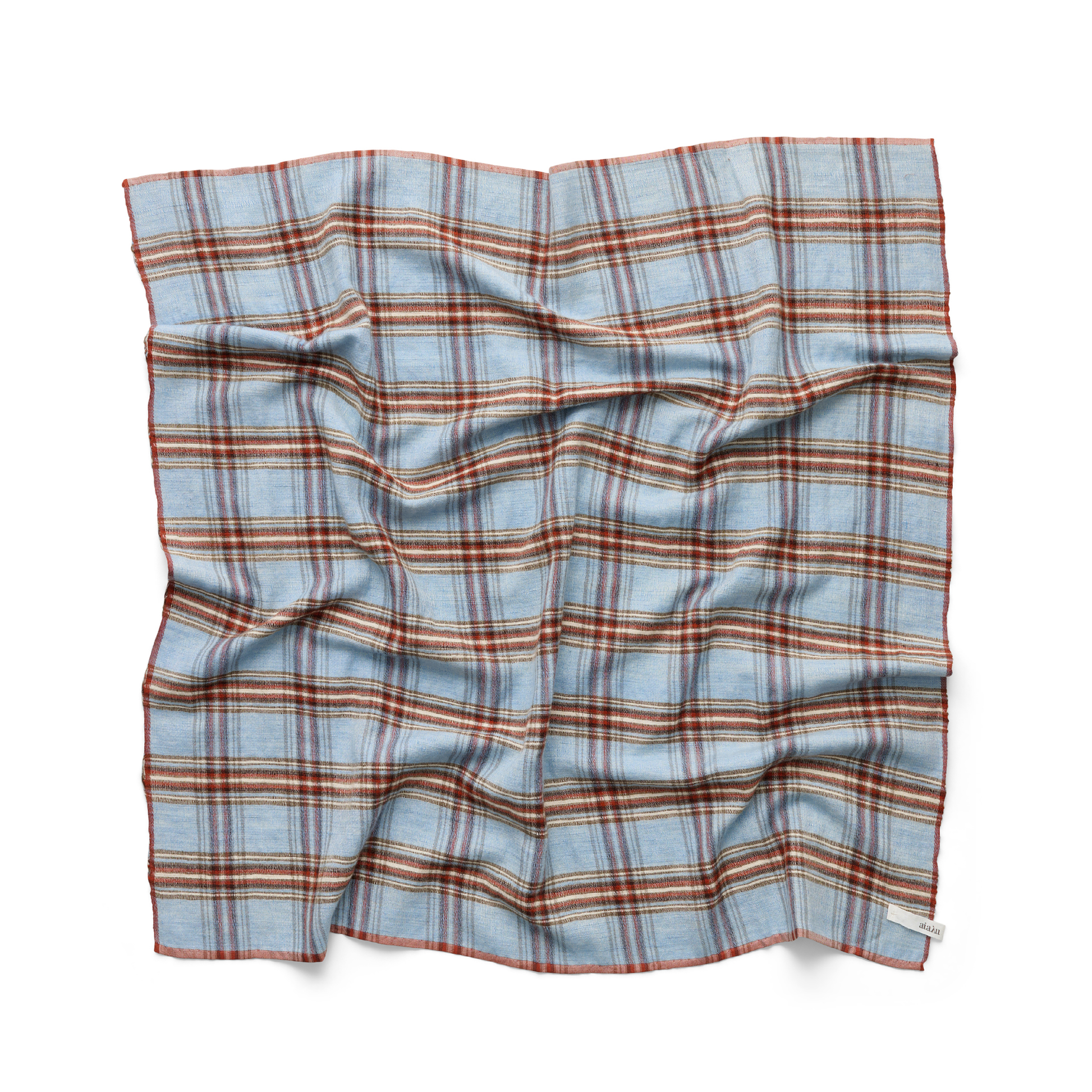 Et blødt tørklæde håndspundet i silke og kashmir på traditionelle nepalesiske håndvæve. Tørklædet er kvadratisk og detaljeret med et aiayu-logo og et feminint mønster i sæsonens karakteristiske tern.