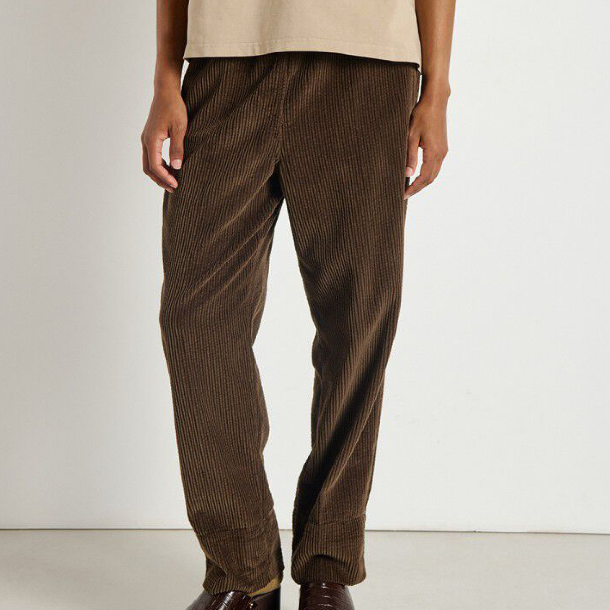 De klassiske Padow bukser fra American Vintage, i en let og blød fløjl. Bukserne har en løs og afslappet pasform, med elastik i livet og lommer i siderne