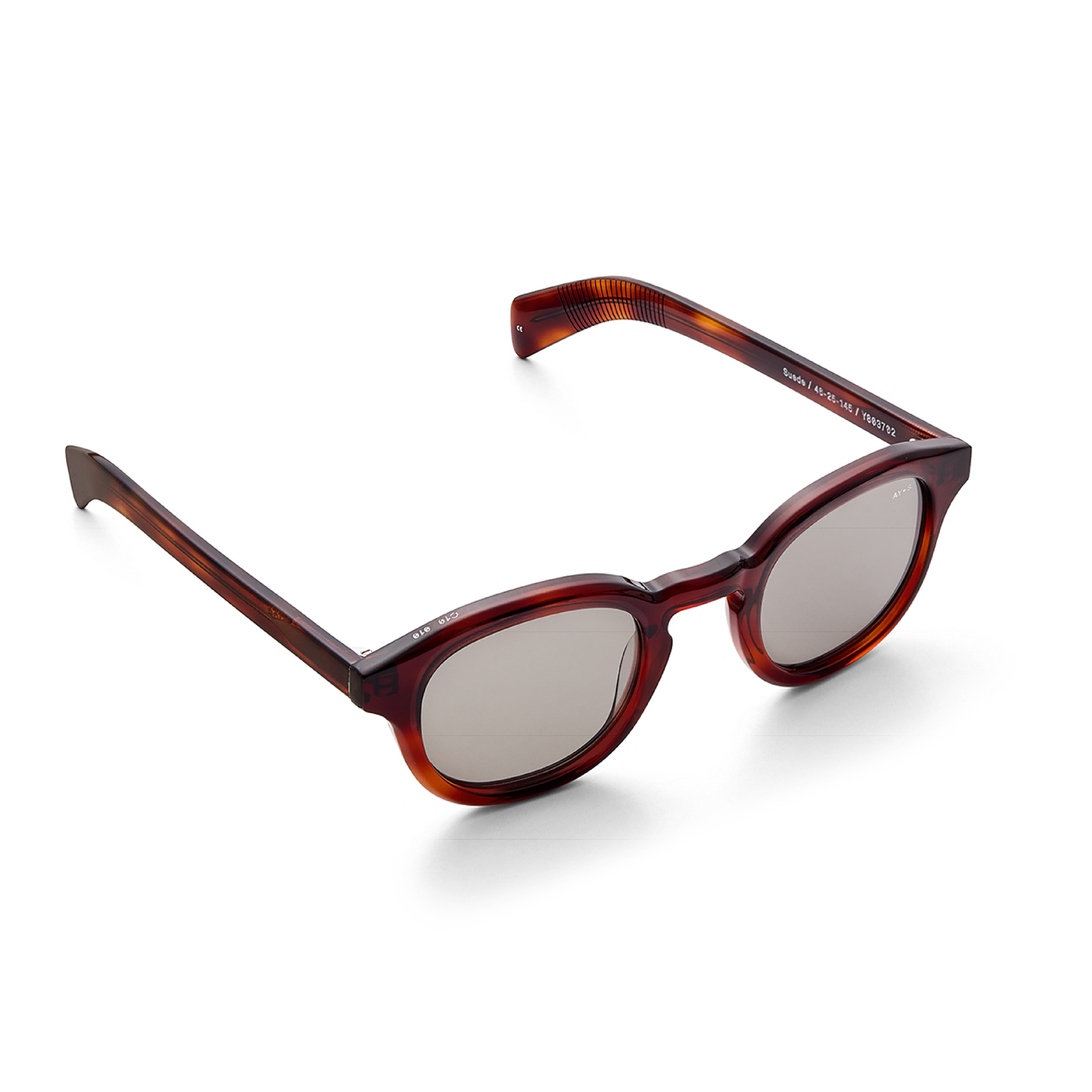 Alle solbriller fra AY Studio er lavet af 28% genbrugt og 42% bio-materiale, der er designet til at holde i mange år. Acetaten kommer fra Mazzucchelli i Italien, der leverer den bedste kvalitet på markedet. Hængslerne kommer med en speciel gummibelægning - der gør friktionen og levetiden perfekt. Linserne er CR39 med en antirefleksbelægning og et specielt UV-filter med beskyttelse op til 400 nm og indeks 1,5. Linsekategori 3: Solbrillerne giver et højt niveau af reduktion af solblænding og god UV-beskyttelse.