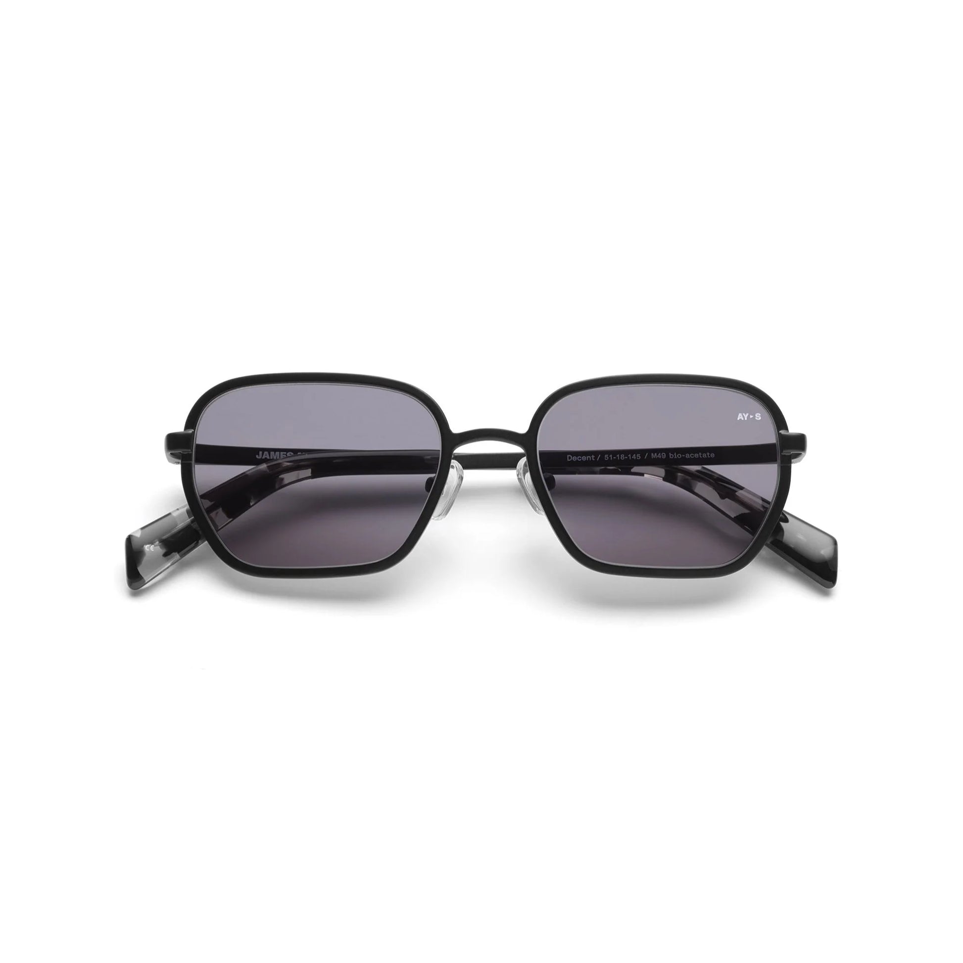 De fine Decent solbriller fra James AY. Dansk designet solbrille i høj kvalitet, der er lavet af metal. Hængslerne er lavet af op til 60% genbrugte metaller. Solbrillerne kommer med CR39 sollinser der har fået en antirefleksbelægning på indersiden og har fuld UV beskyttelse.