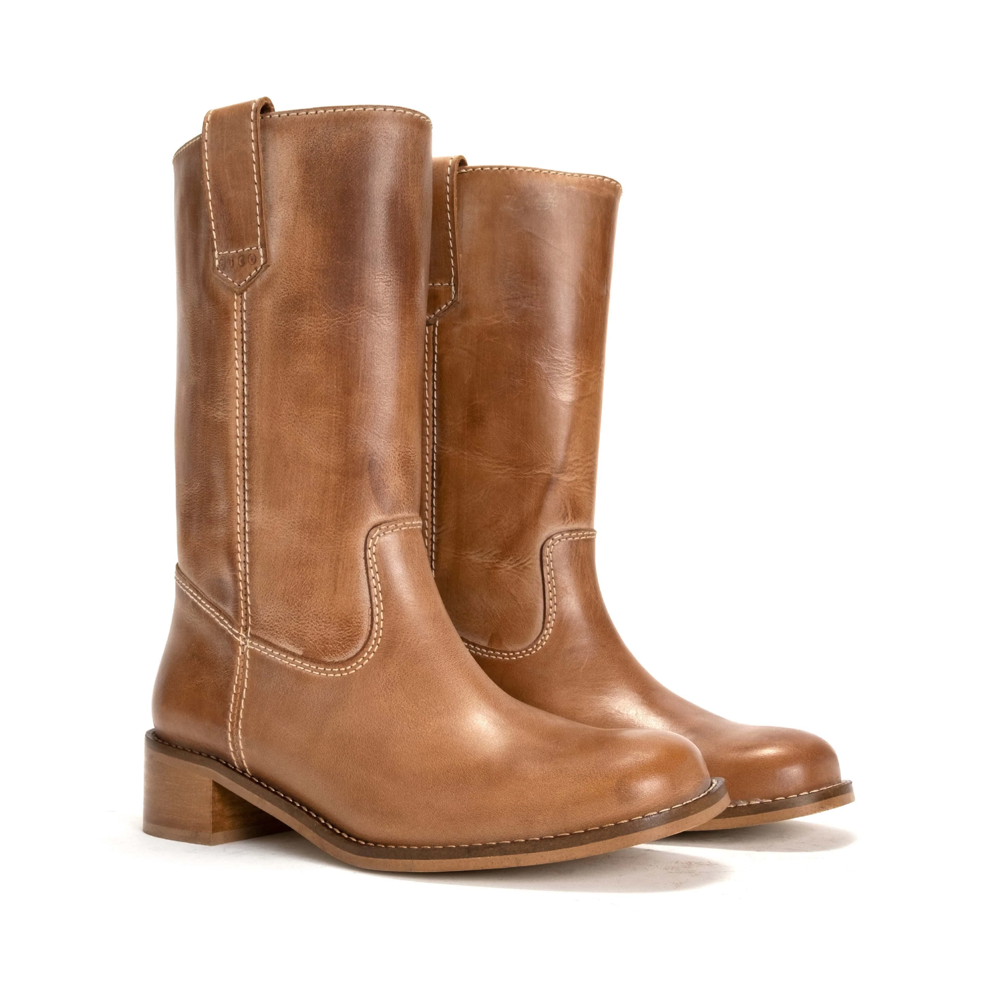 De smukkeste støvler fra Dico Copenhagen, i smuk cognacfarvet skind.