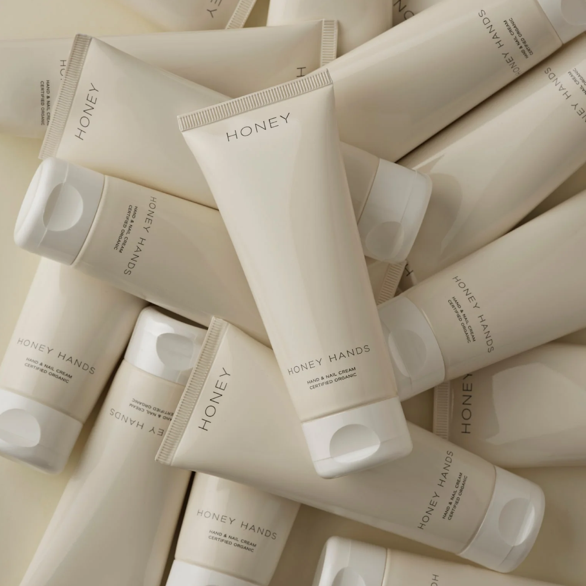 Mini manicure på tube - mød HONEY Hands. HONEY Hands forener luksuriøs pleje, certificerede ingredienser og en tekstur, der smelter ind i huden og efterlader hænderne silkebløde og neglene velplejede.
