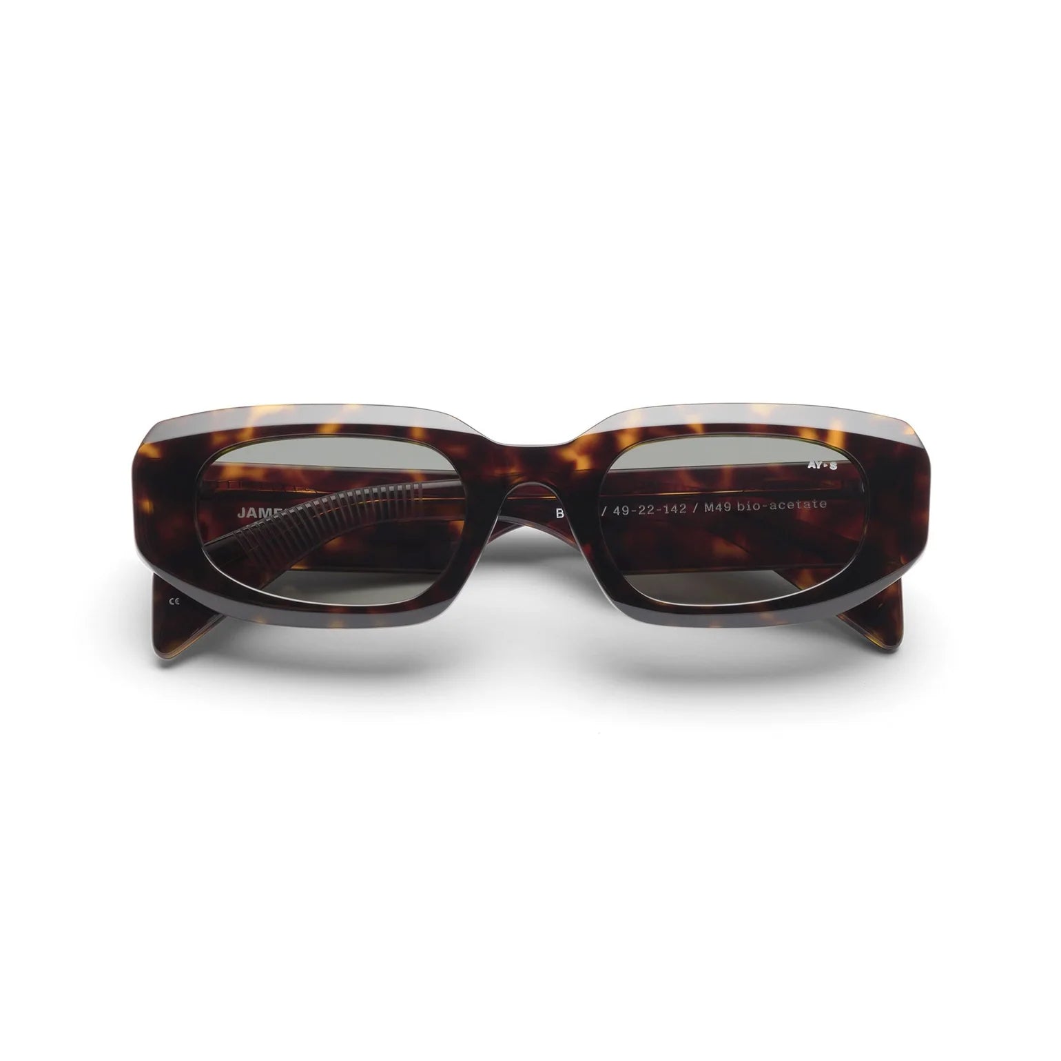De fine Bloom solbriller fra James AY, i smuk klassisk havana-farve.