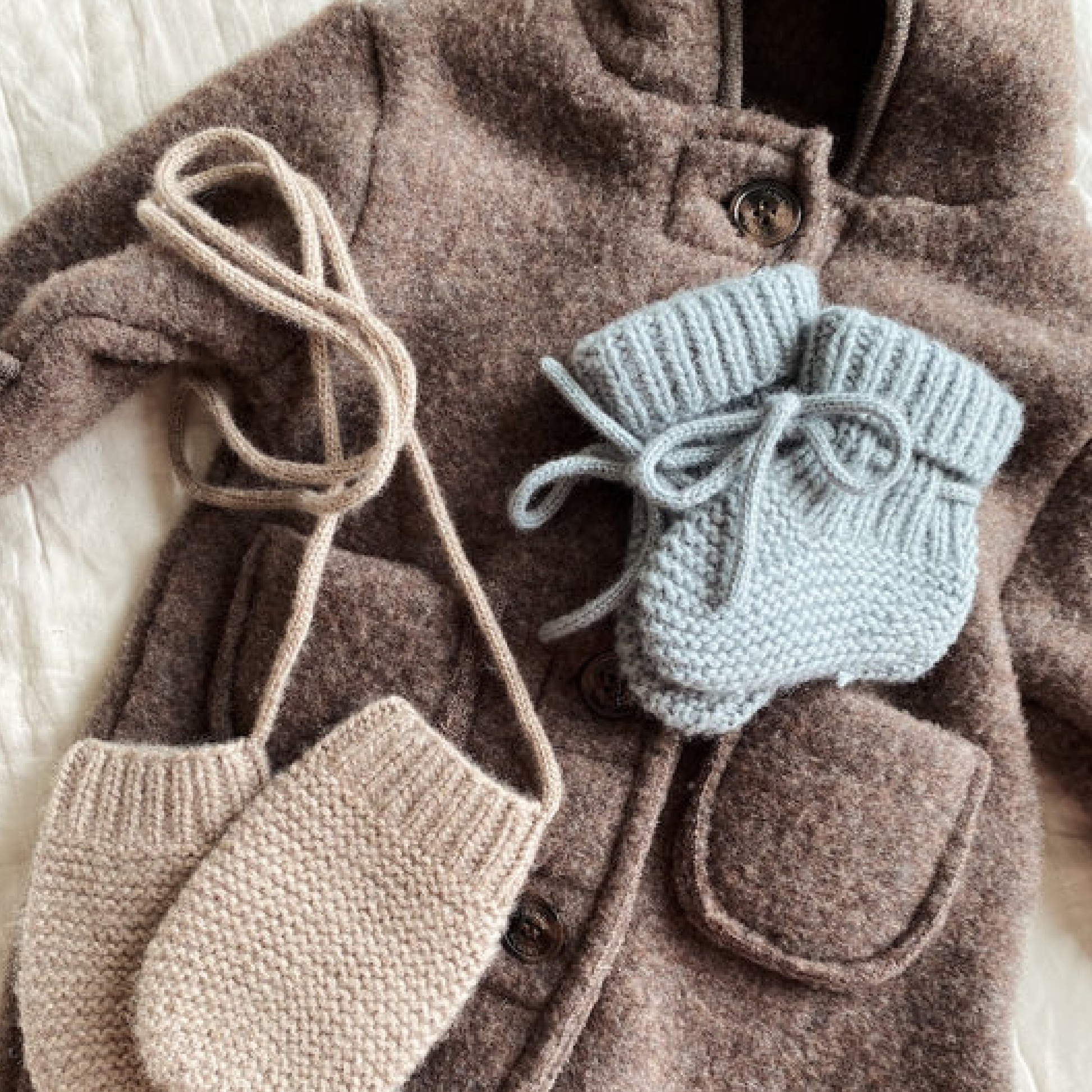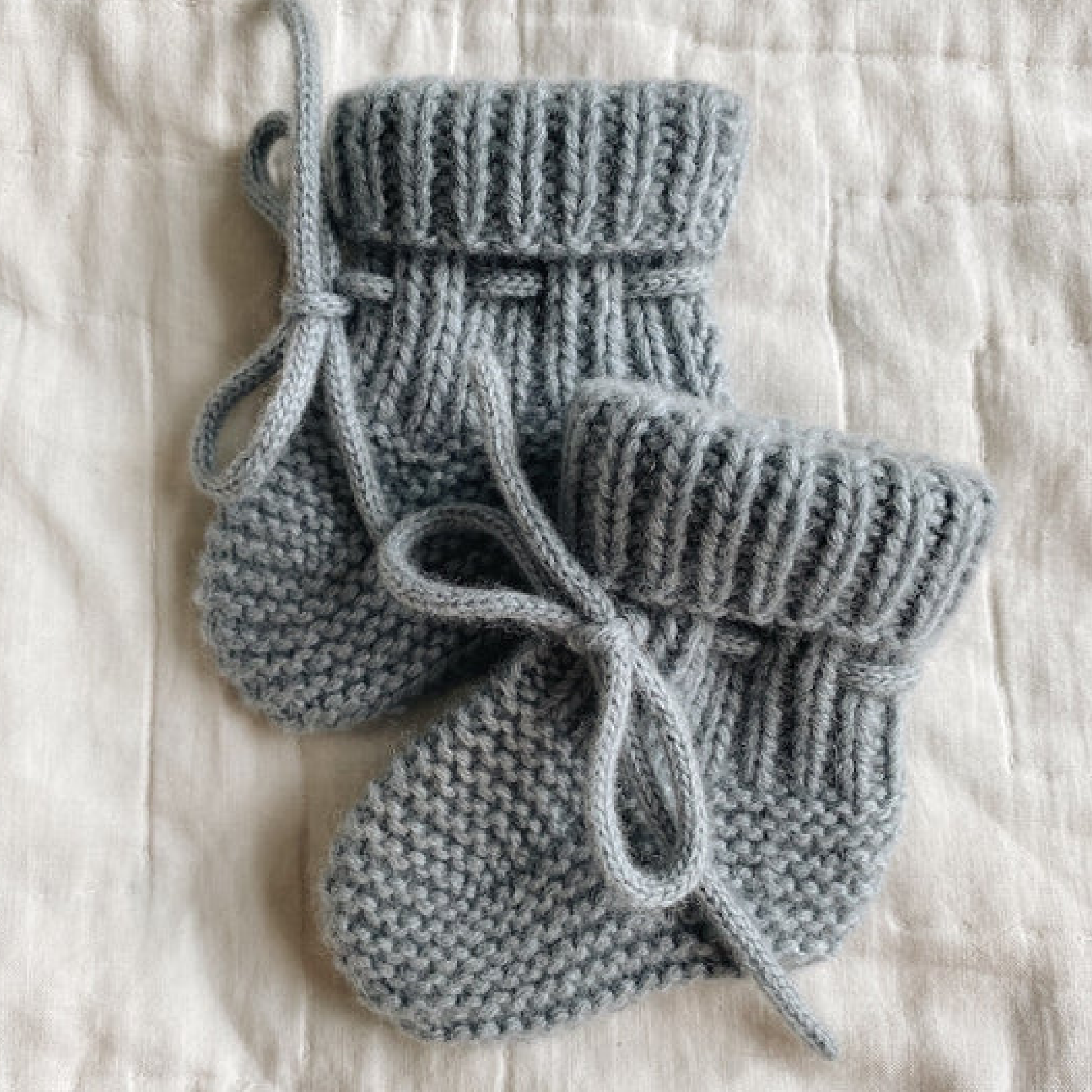 Alpha cashmere futterne fra det fine danske brand, Lalaby. Futterne er håndstrikket i 100% cashmere, og lukkes med en blød snor om anklen - så de sidder godt på de små fødder.