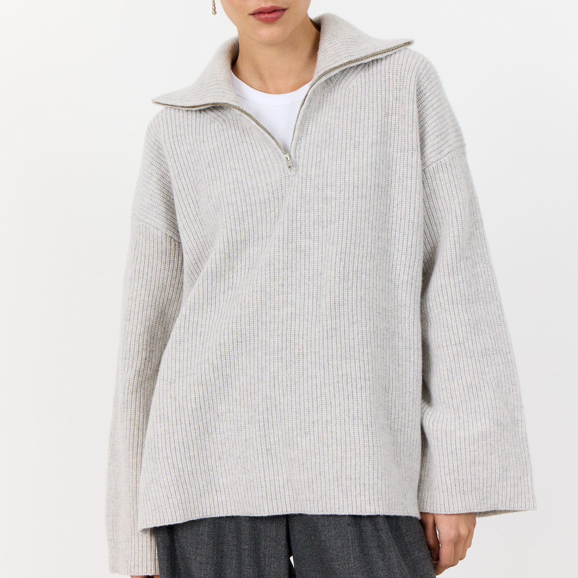 Blød og skøn strik med lynlås fra Levete, i den blødeste uld- og cashmereblanding.