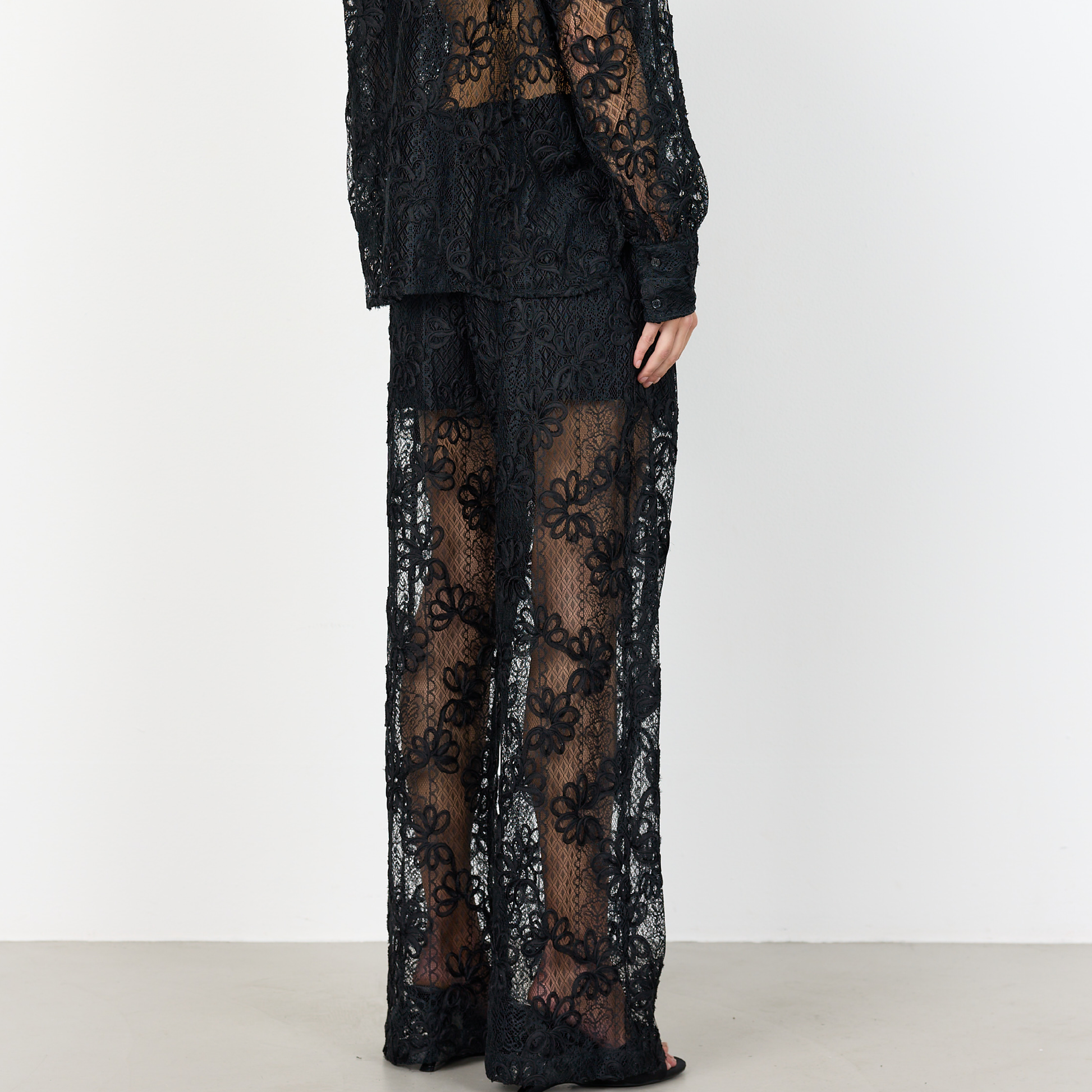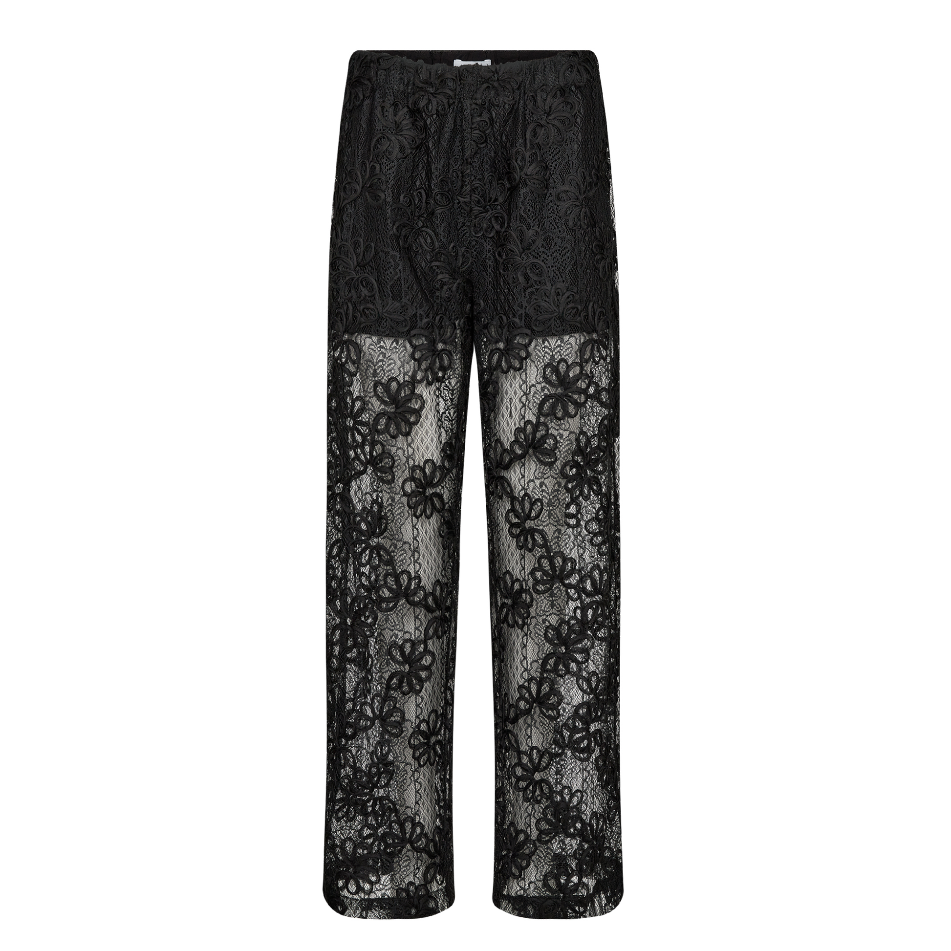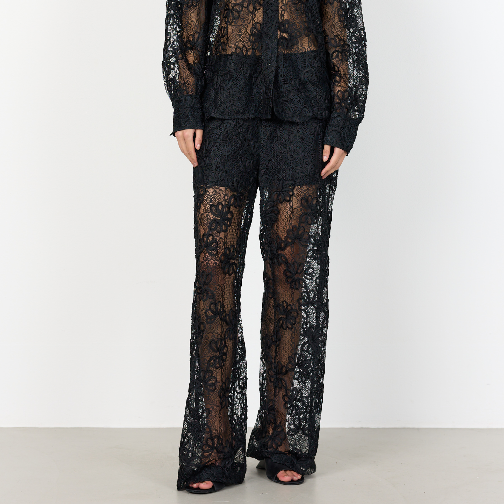 De fine Olera 2 bukser fra Levete Room. Bukserne har et elegant blondeovertræk med en behagelig elastisk linning og et design i fuld længde.
