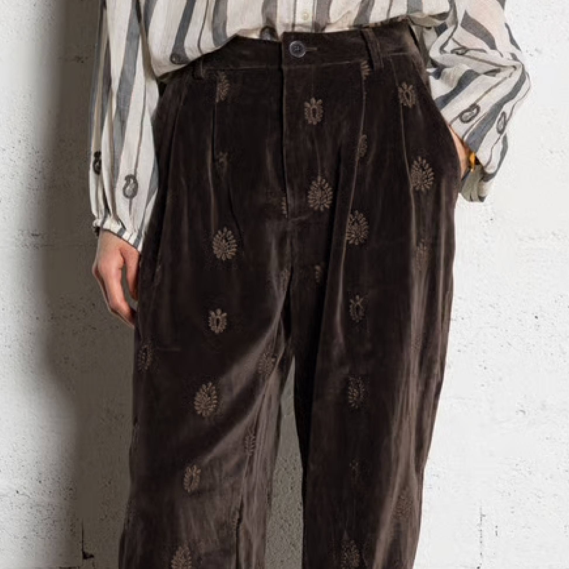 Skønne velour bukser i den fineste farve og print, fra det spanske mærke Maison Hotel