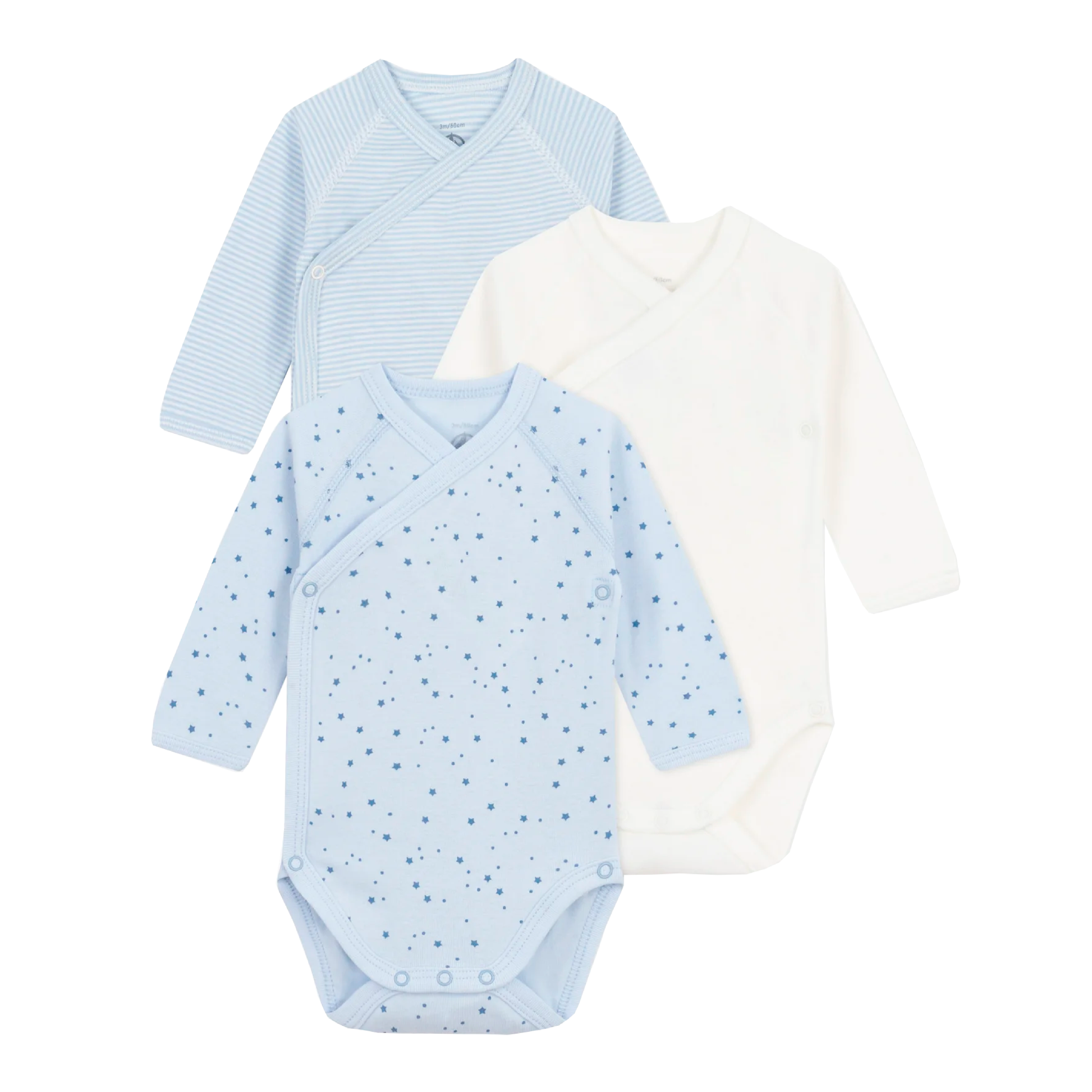 3-pak Langærmet Body’er Med Krydsluk, Lyseblå