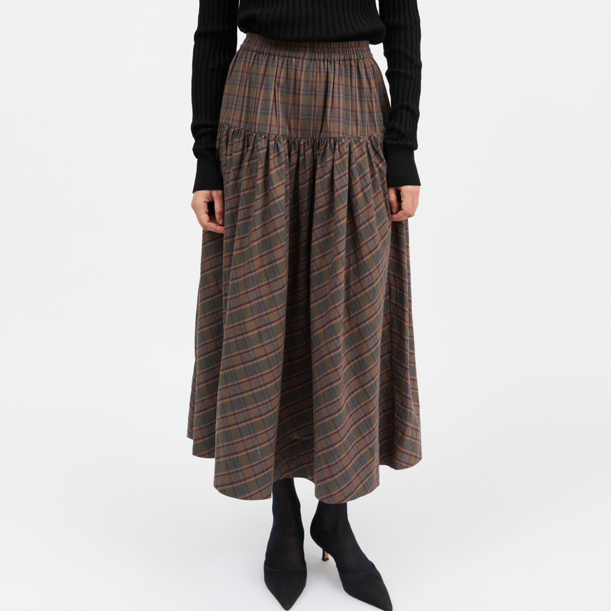 Lili Skirt er en lang nederdel fra Skall Studio. Nederdelen har elastik i taljen - og kan nemt dresses op og ned