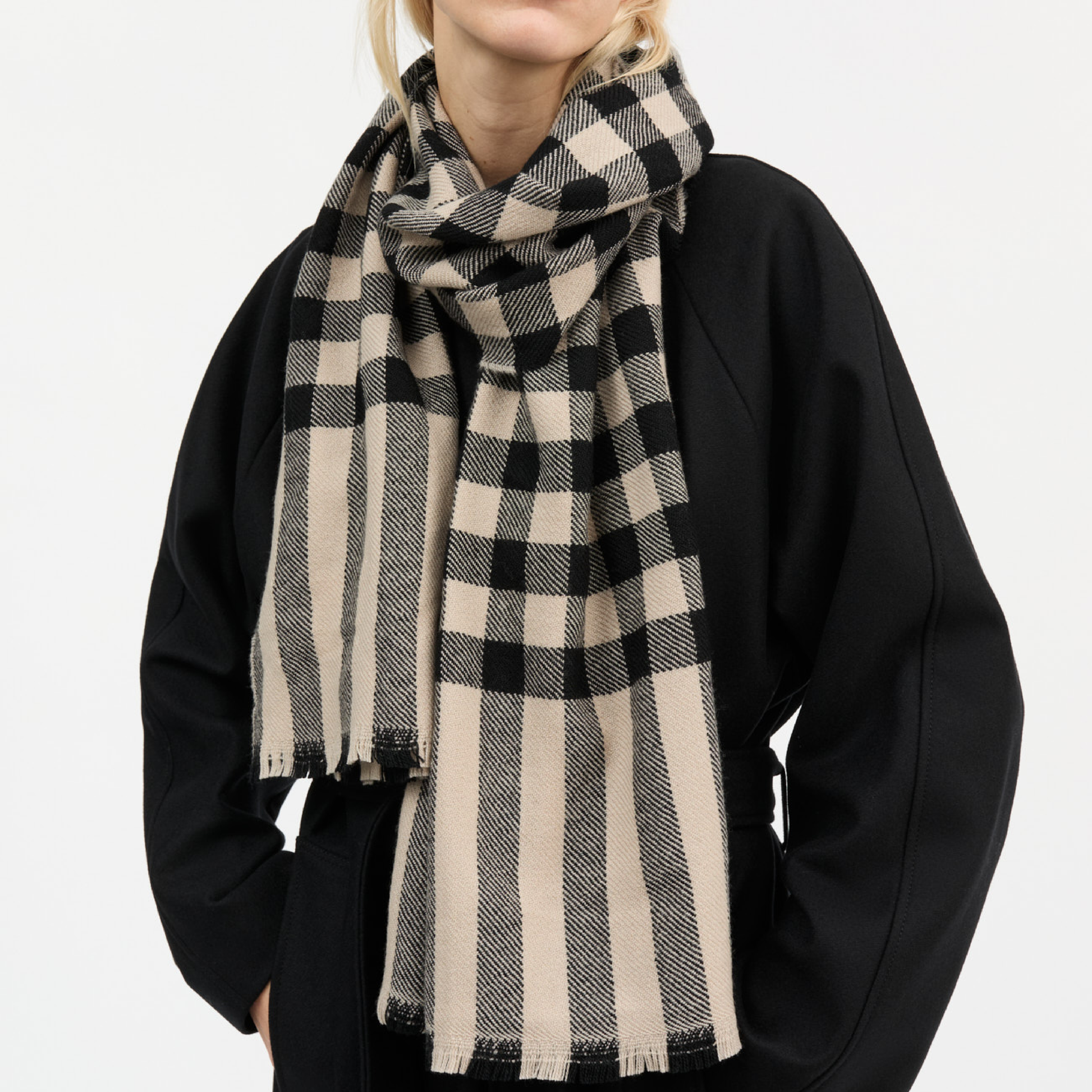 Nadelle Scarf, Black/Beige Check
